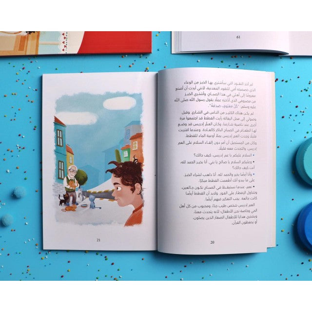 السلام عليكم يا أصدقاء. أنا صالح. أحب تعلم القرآن الكريم، والسُّنَّة النبوية. وسأحكي لكم كيف أُطَبِّق ما أتعلمه من آيات القرآن الكريم وأحاديث النبي صلى الله عليه وسلم في المواقف اليومية التي أمر بها… أحرص في كل معاملاتي على العمل بما تعلمته من القرآن والسُّنَّة. وكلما أُتِيحت لي الفرصة أُعَلِّم أصدقائي ما تعلمته من الآيات القرآنية و الأحاديث النبوية، وأشجعهم على العمل بها حتى تصبح حياتنا جميعًا أفضل. وأنا واثق من أنكم أيضًا ستتعلمون كيف تطبقون الآيات القرآنية والأحاديث النبوية في حياتكم اليومية من خلال قراءتكم للمواقف المختلفة التي سأحكيها لكم، والآن أتمنى لكم جميعًا قراءة ممتعة…