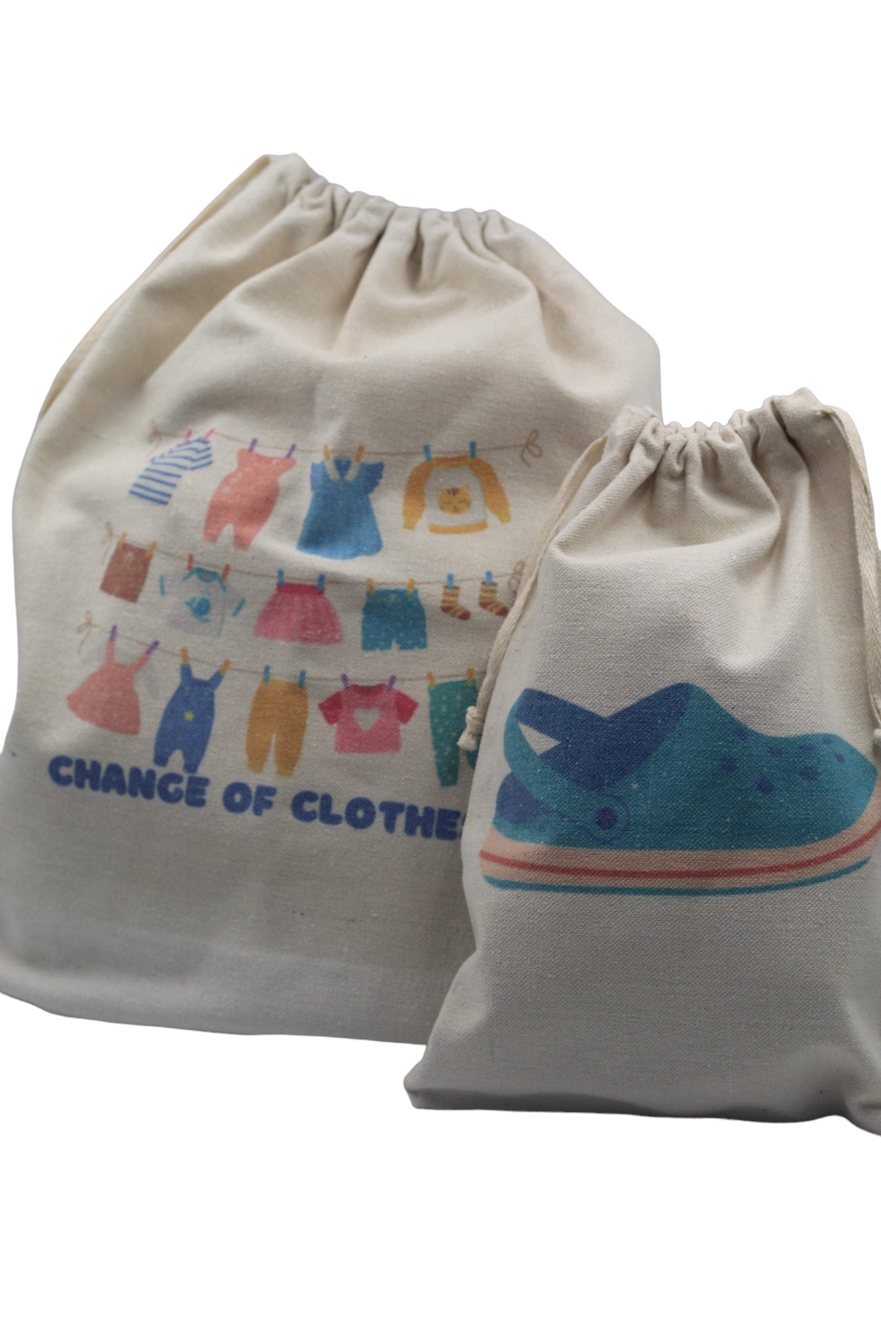 2. a fun and handy drawstring bag featuring Change of Clothes which you can use for after school activities or travel.