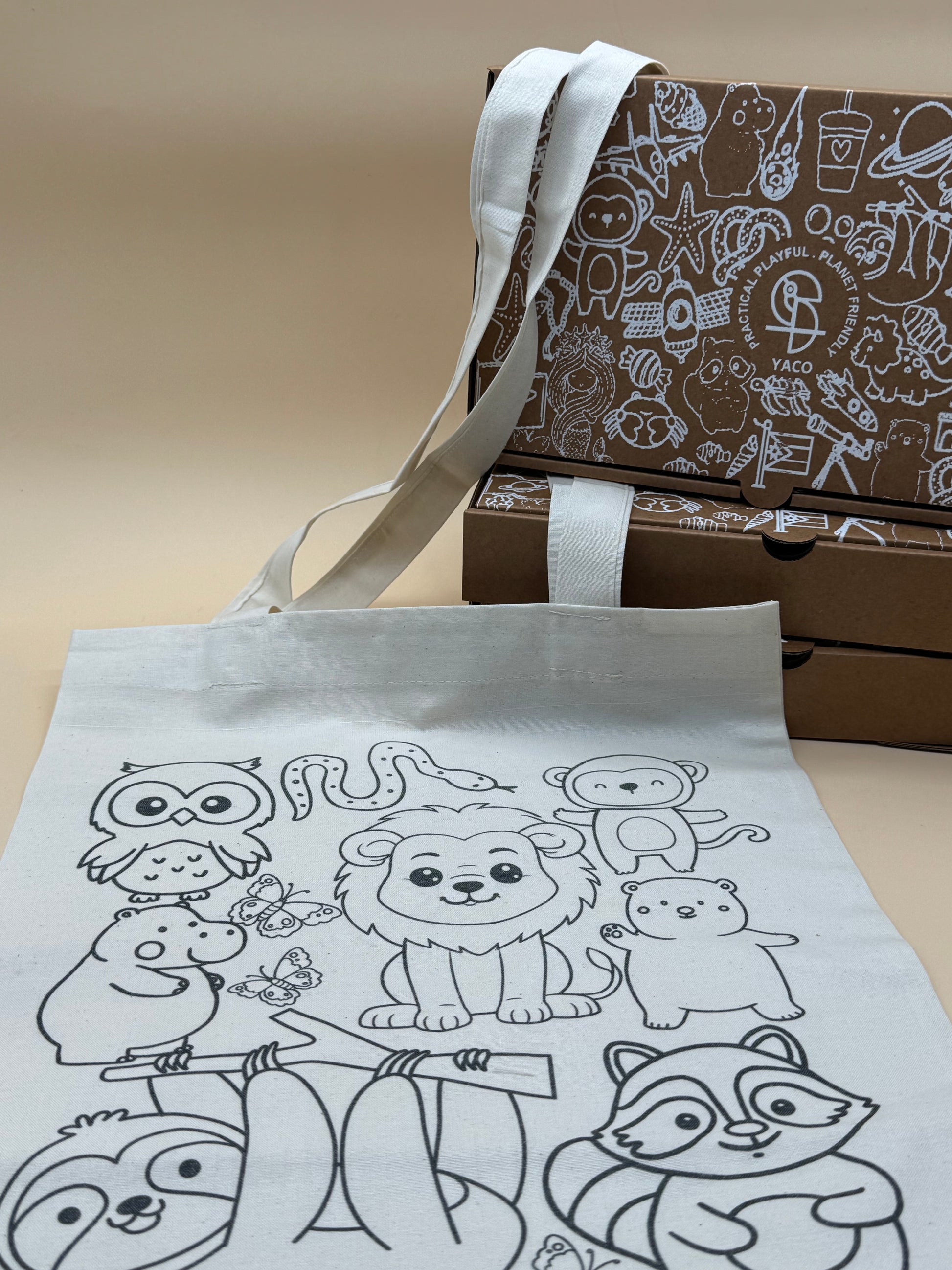 Tote Bags 30x40 cm Available in 5 designs Made from linen fabric Comes with 6 washable colors Packaged in a recyclable and colorable box