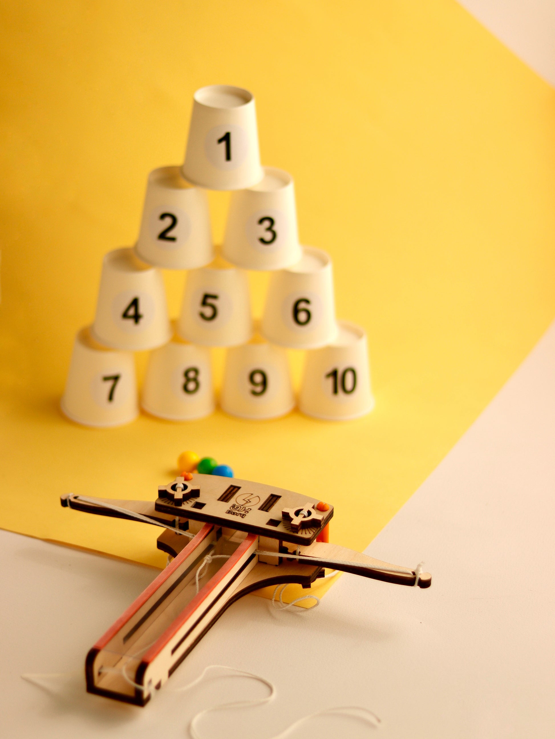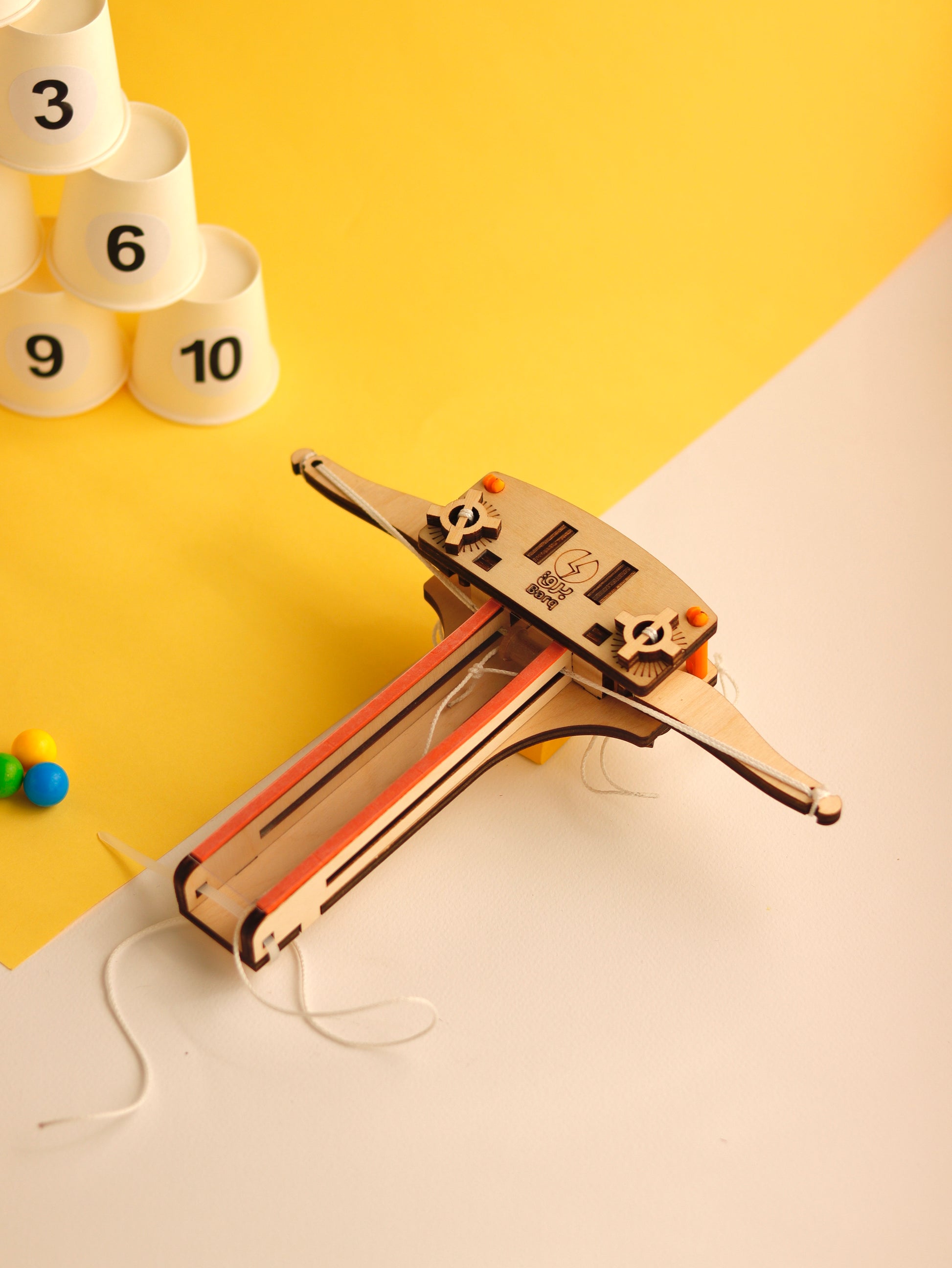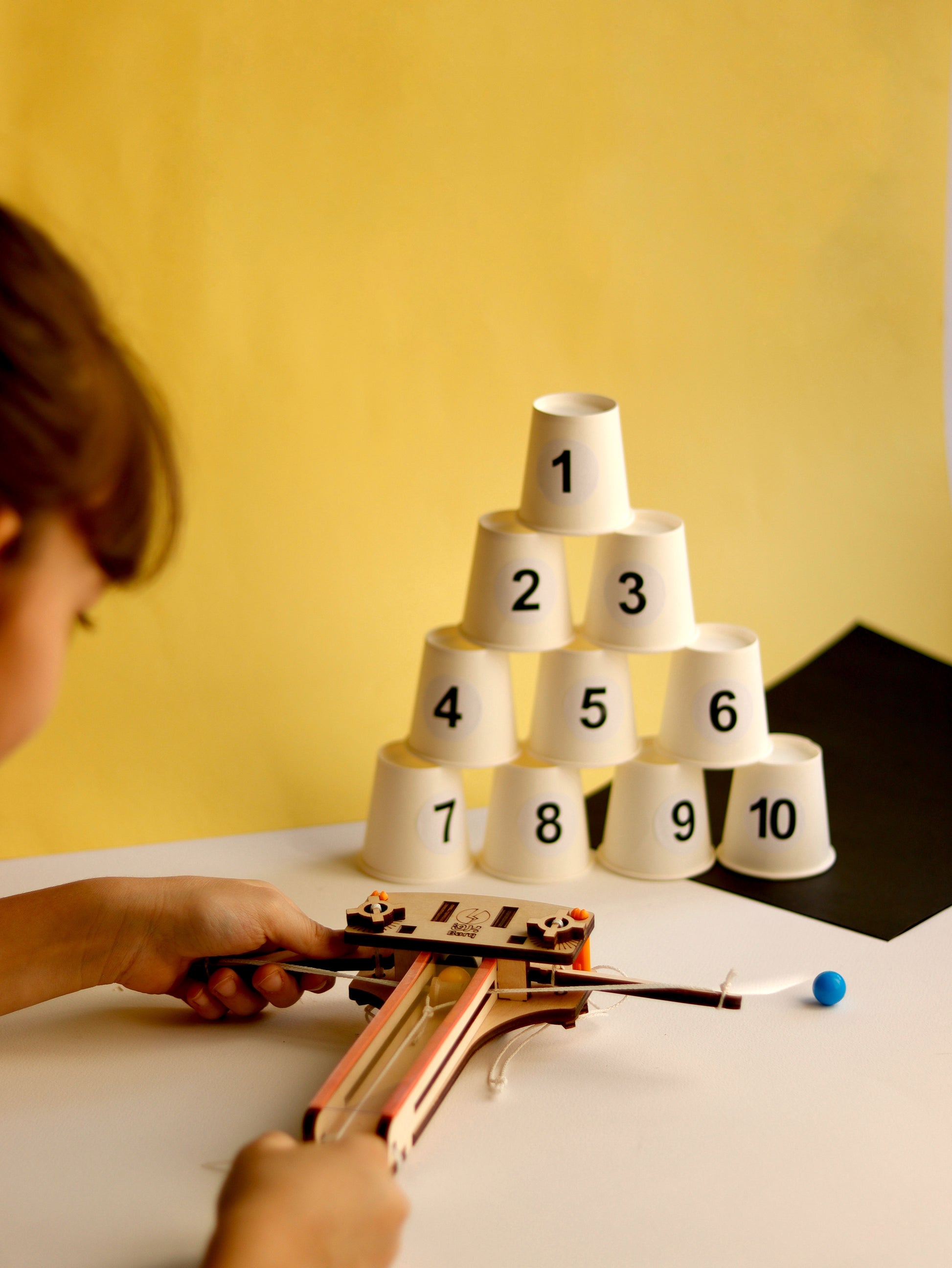 قم بإعادة صُنع آلة القاذف التي كانت تستخدم قديماً لقذف الأشياء بعيداً، واستمتع في توظيفها في بعض الألعاب والتحديات. تعلَّم أيضاً من خلال المجلة عن القاذفات عبر التاريخ، ثم قم بعمل المزيد من التجارب الإضافية وتوصَّل لبعض الإستنتاجات بناء على ذلك.