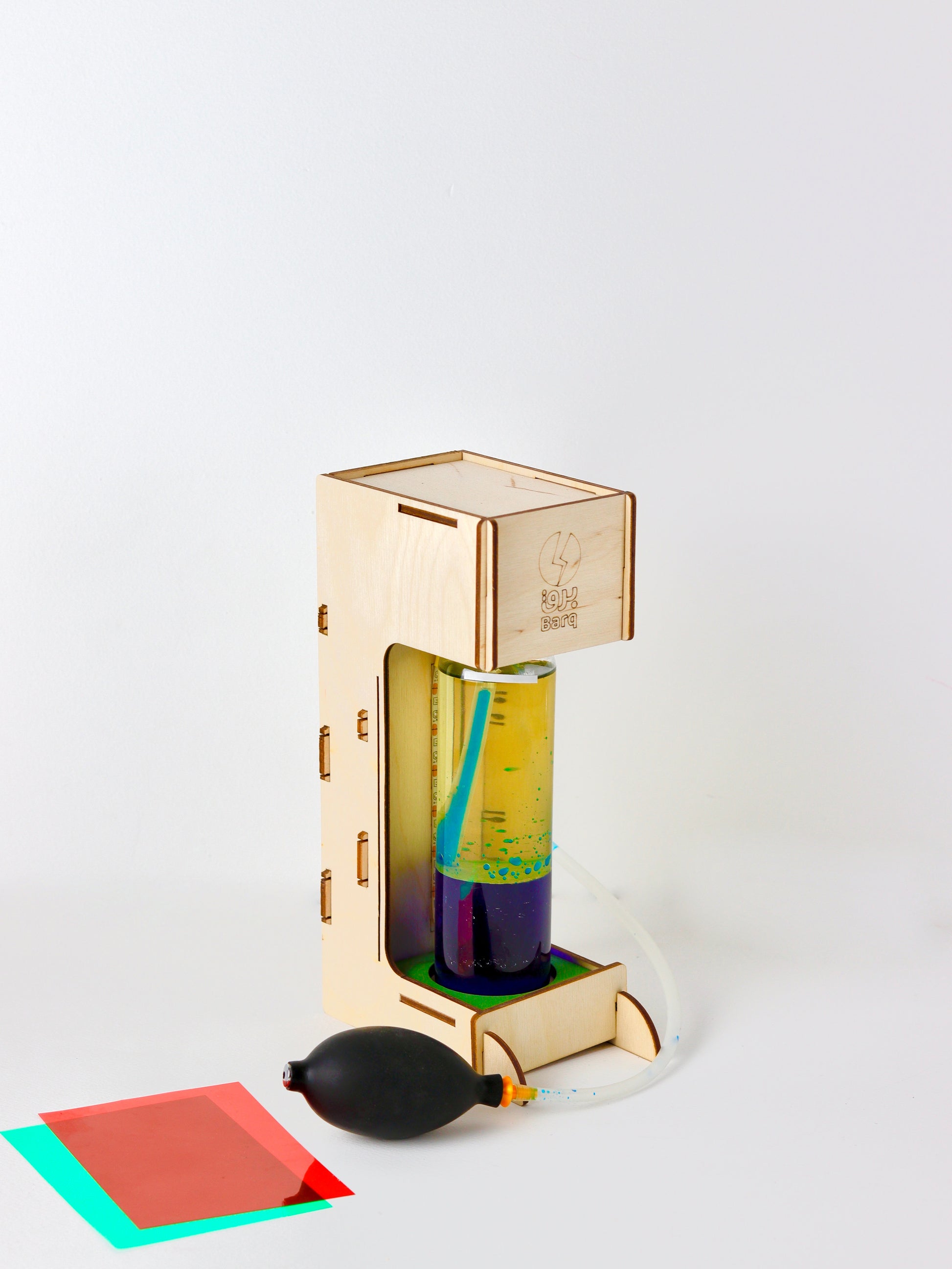 In this box, you will learn more about liquids. You will create a bubble lamp and then discover the scientific reason behind the formation of these colorful bubbles. Additionally, you can apply an experiment from the magazine to create a simple tool for measuring the density of objects.