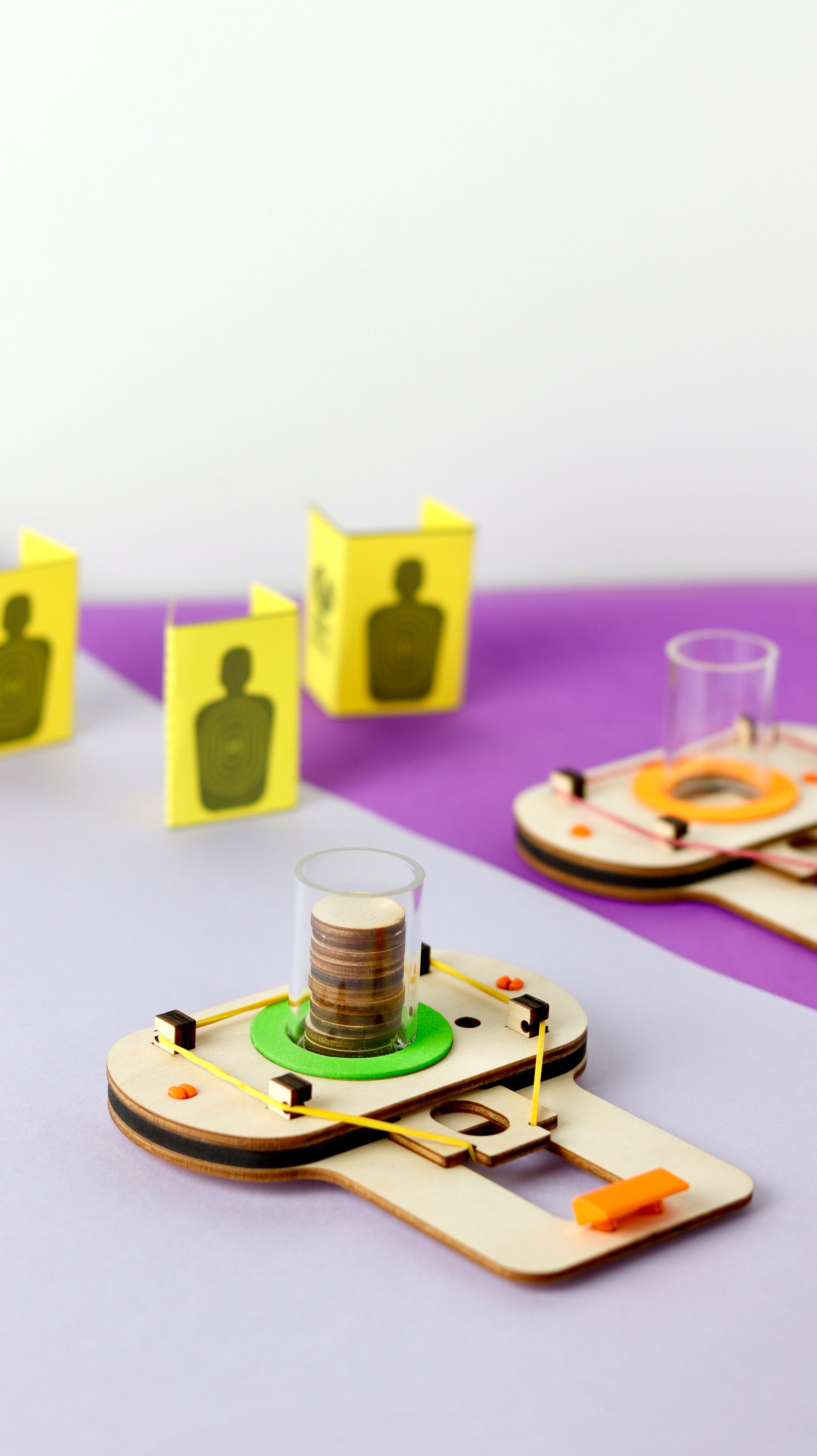 You can better understand motion and forces through the Disc Launcher game. You will assemble it and then use it in various games and experiments included in the box. In the magazine, you will grasp the concept of Inertia and find more experiments related to it.