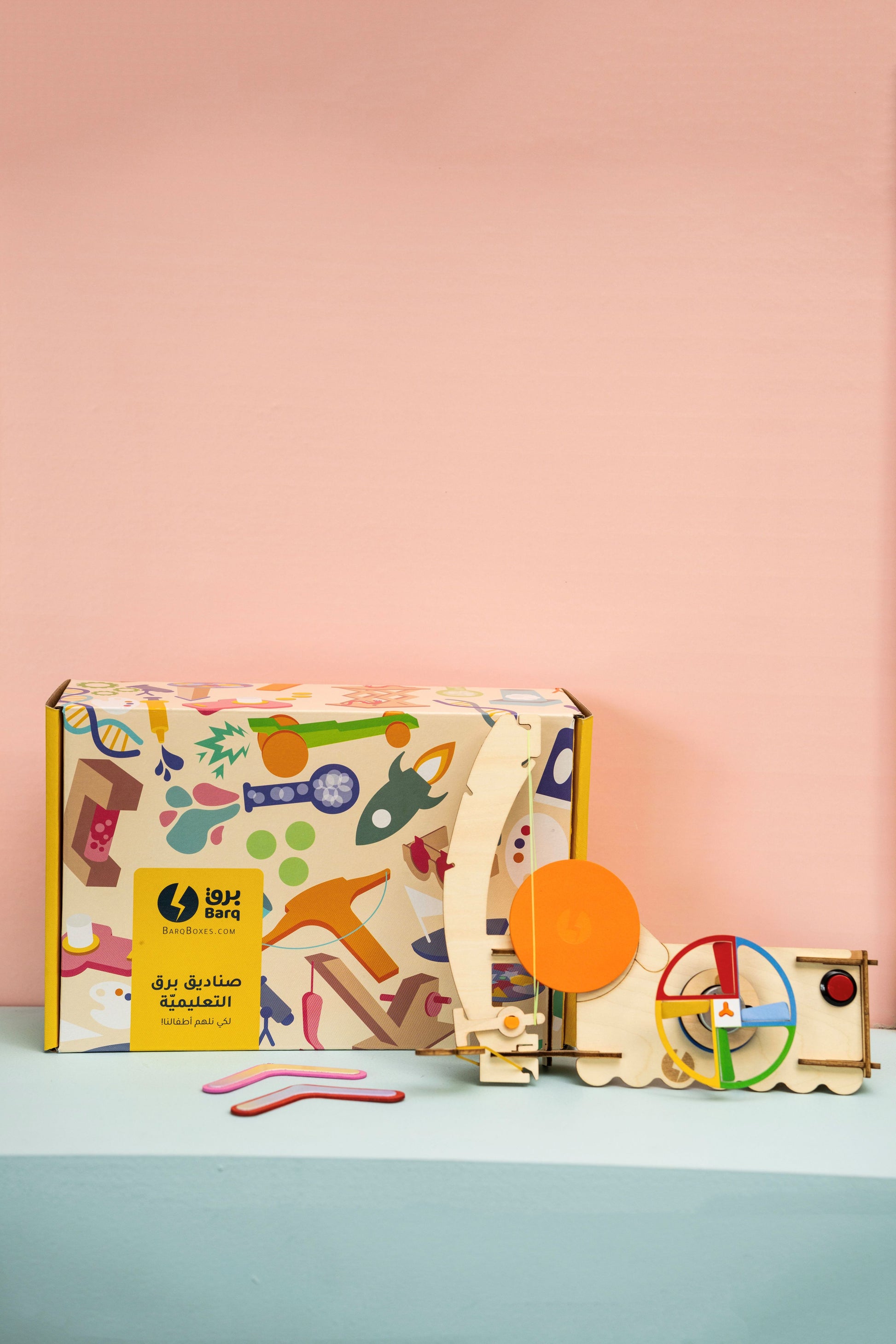 ما الذي يجعل الطائرة والهيليكوبتر تحلّقان في السماء؟ في هذا الصندوق ستقوم ببناء منصّة طيران تسمح بنوعين من التحليق عمودي وأفقي. حيث ستتعلم من خلال المجلة المرفقة عن أنواع القوى المؤثرة على الجسم الطائر وعن العلوم وراء طيران الأجسام عمودياً وأفقياً في الهواء. ستتعرف كذلك على علاقة كل من عباس بن فرناس وبذور القيقب بالطيران.