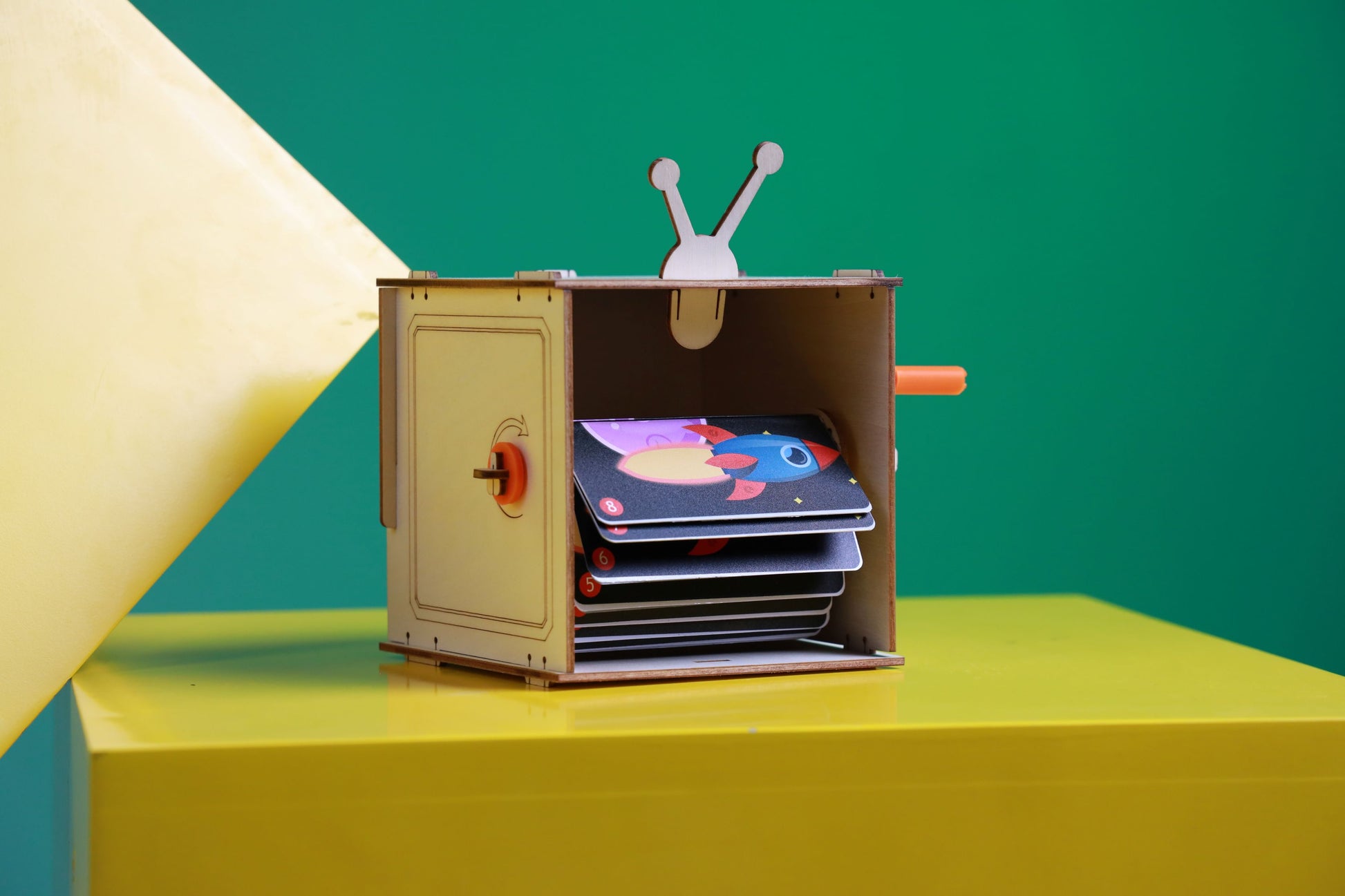 هل تساءلت من قبل كيف تم عمل الرسوم المتحركة؟ نقوم بمشاهدة الرسوم المتحرّكة طوال الوقت، لكن لماذا لا نحاول صناعتها بأنفسنا؟ في هذا الصندوق ستجد جميع القطع التي ستساعدك على صنع صندوق رسوم متحرّكة. من خلال مجلة الصندوق ستتمكن من فهم كيف تقوم هذه الرسوم بالتحرّك، ثم ستتعلّم بعدها بعض أساسيات تحريك الرسوم المتحرّكة، أما في النهاية فستصنع فيلمك الخاص.