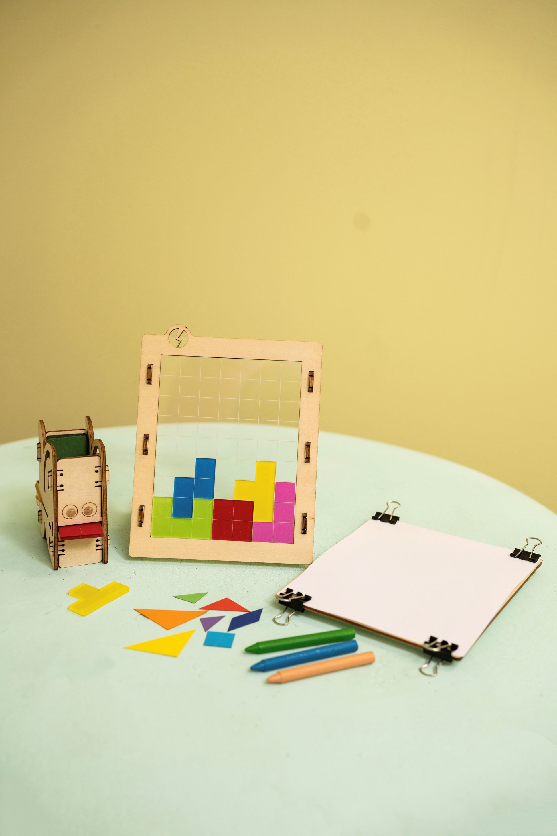 In this box, you will build a geometric shapes game and play with it as a way to train and strengthen your brain!
