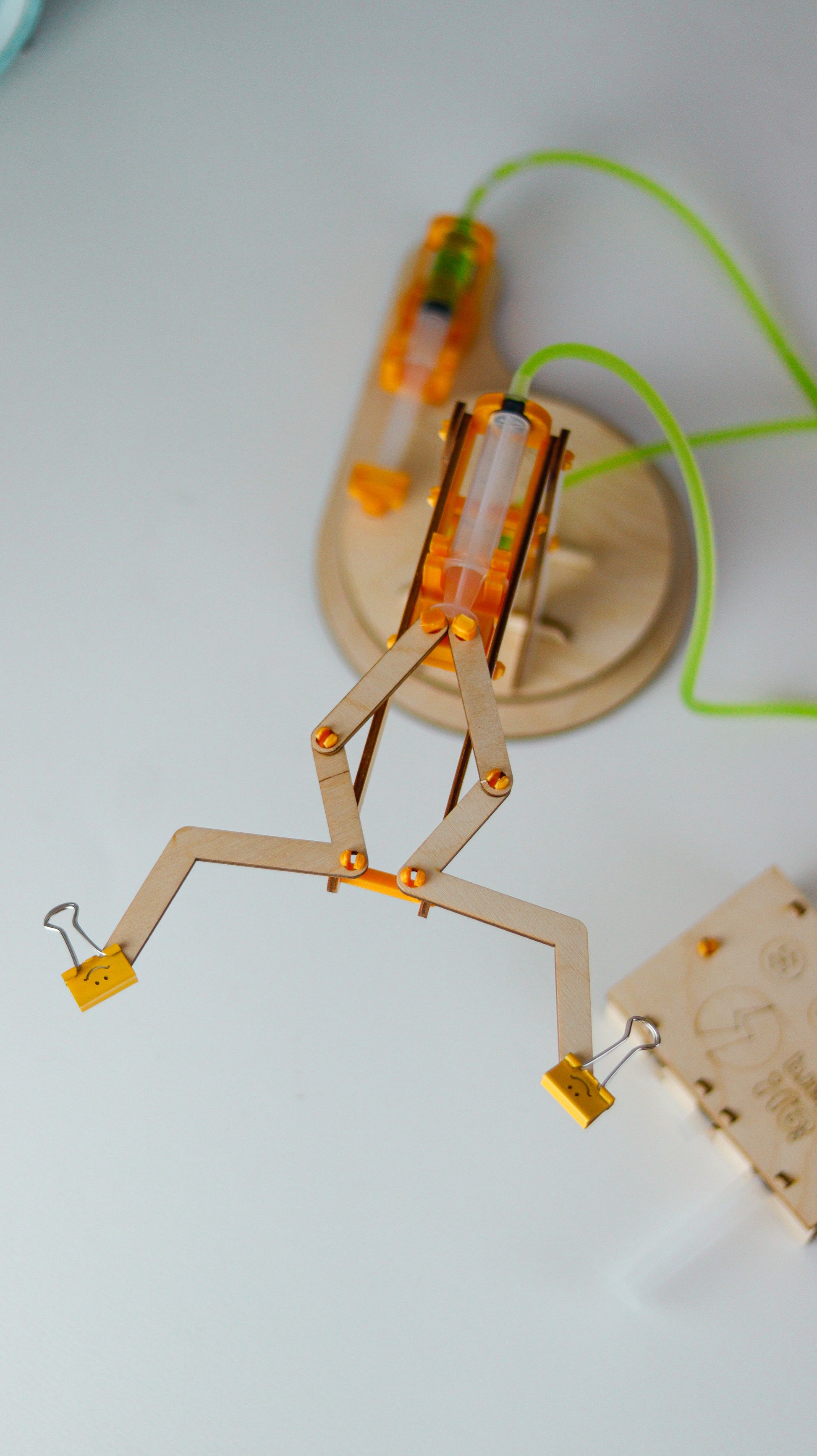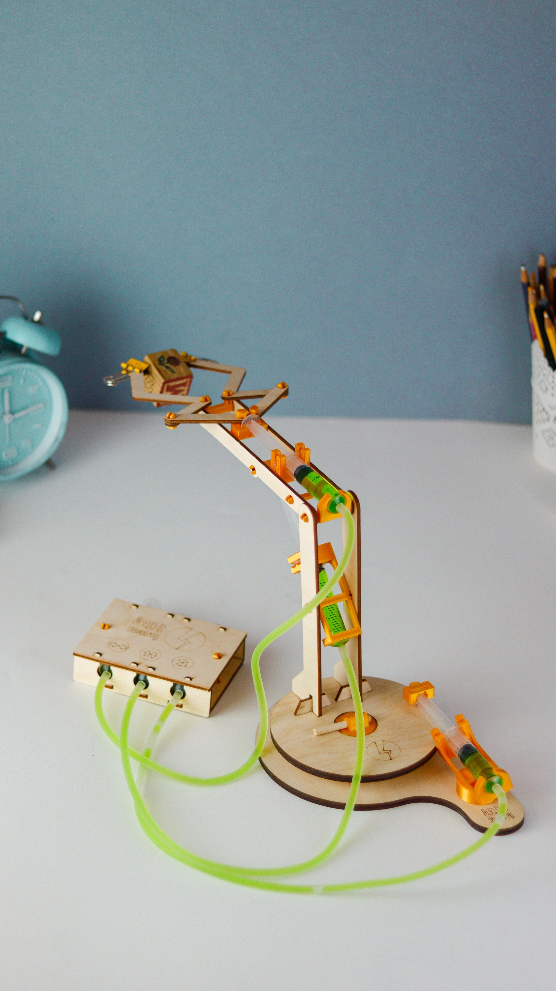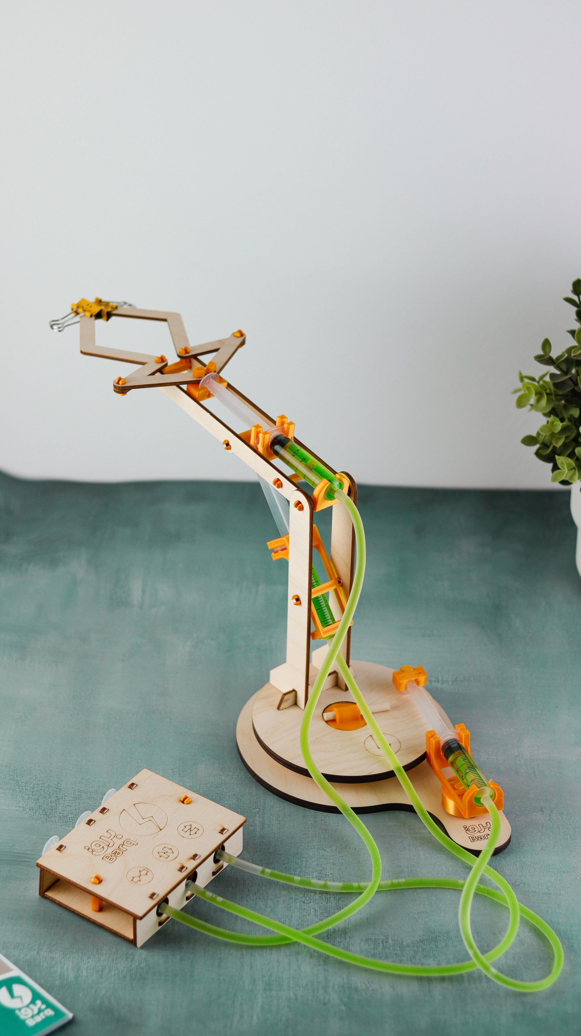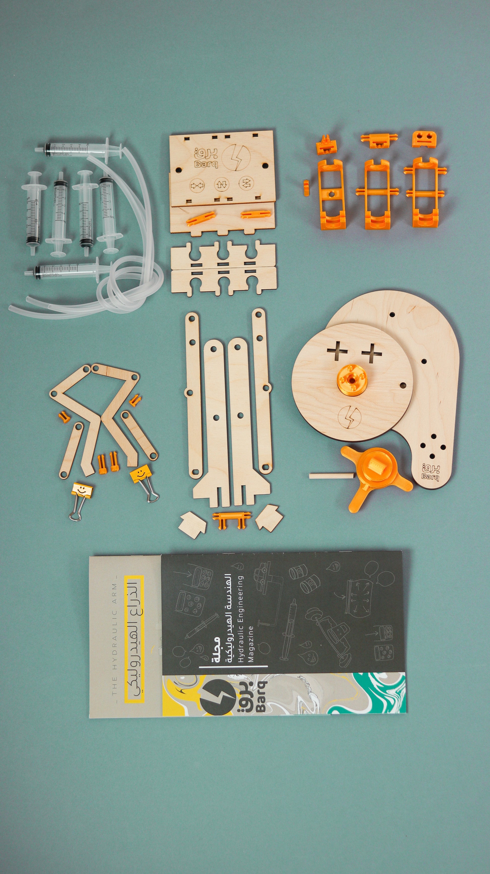 Yes, we can use water to move or even crush objects. In this box, you will be able to create a hydraulic arm powered by water pressure. Through the magazine, you will understand the principles of hydraulic systems and also apply various experiments and challenges related to it.