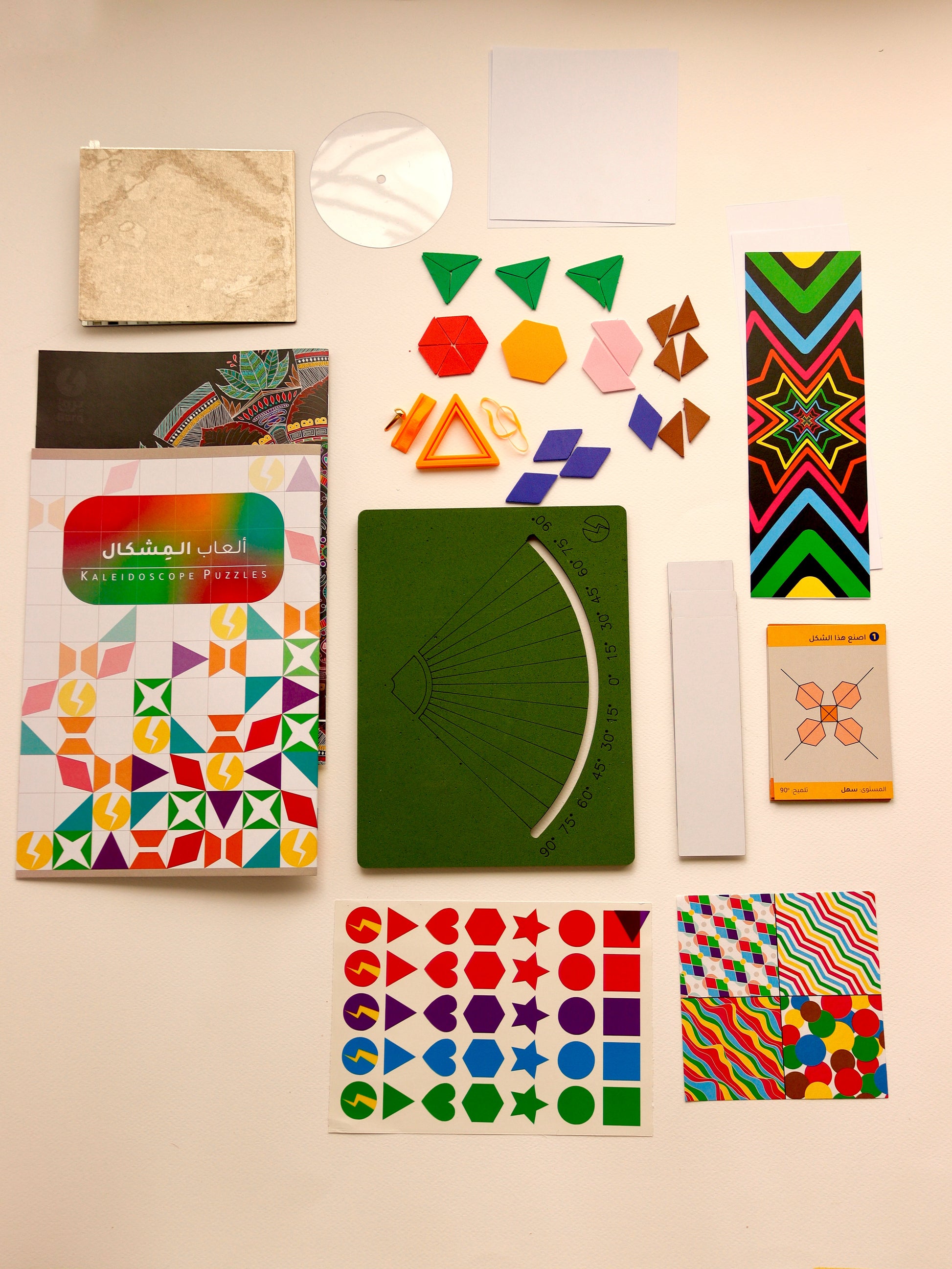 You can find symmetry all around you wherever you look! In this box, you will assemble the kaleidoscope in its two forms (static and rotating) and then solve some optical illusion puzzles. After that, you will learn more about symmetry and its types. You will also take a glimpse at symmetry in Islamic civilization.