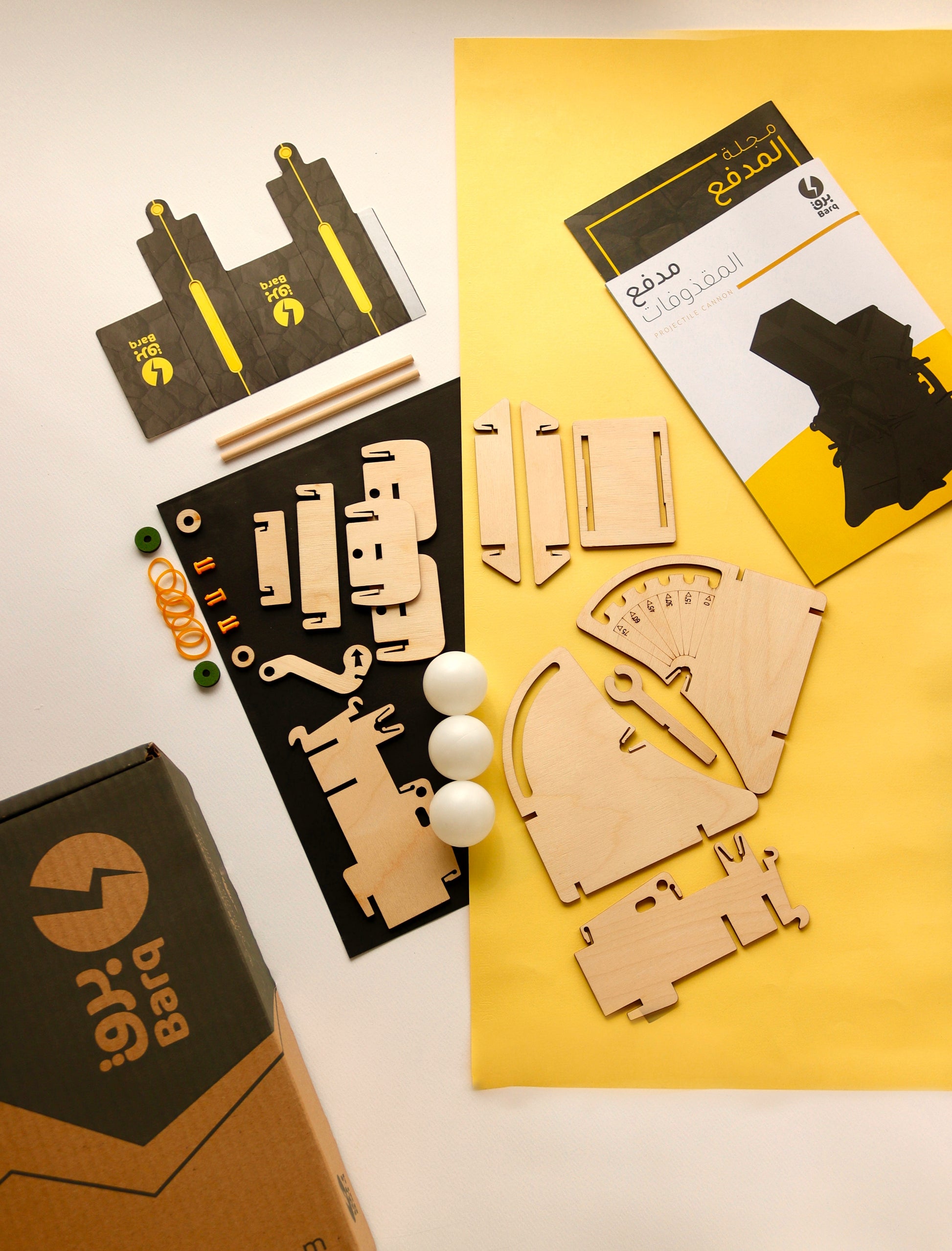 ستقوم بهذا الصندوق ببناء مدفع مقذوفات لقذف الكرات بعدّة زوايا. كما ستتعرف من خلال المجلة على بعض أسلحة الرمي وعلى طبيعة حركة القذيفة في الهواء.