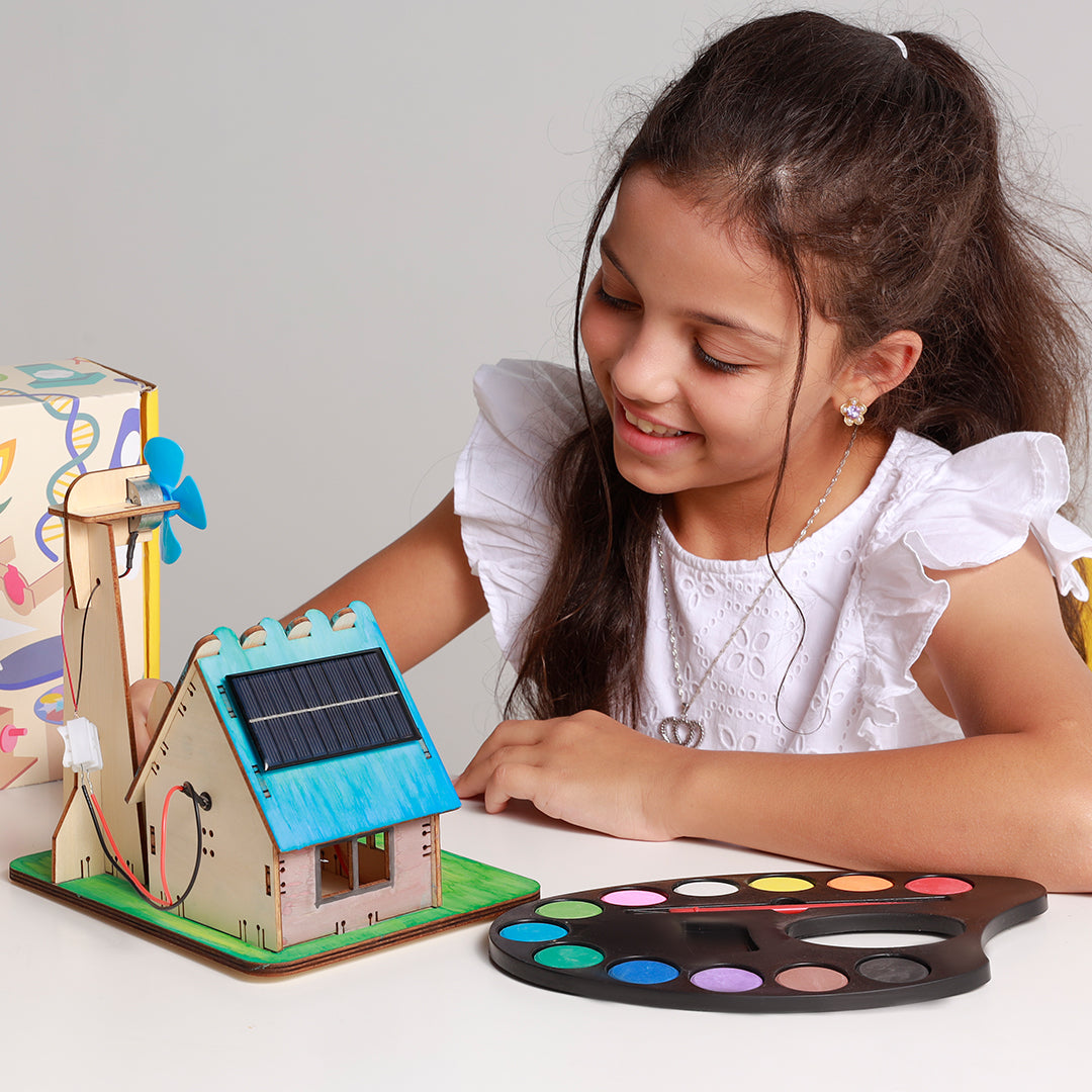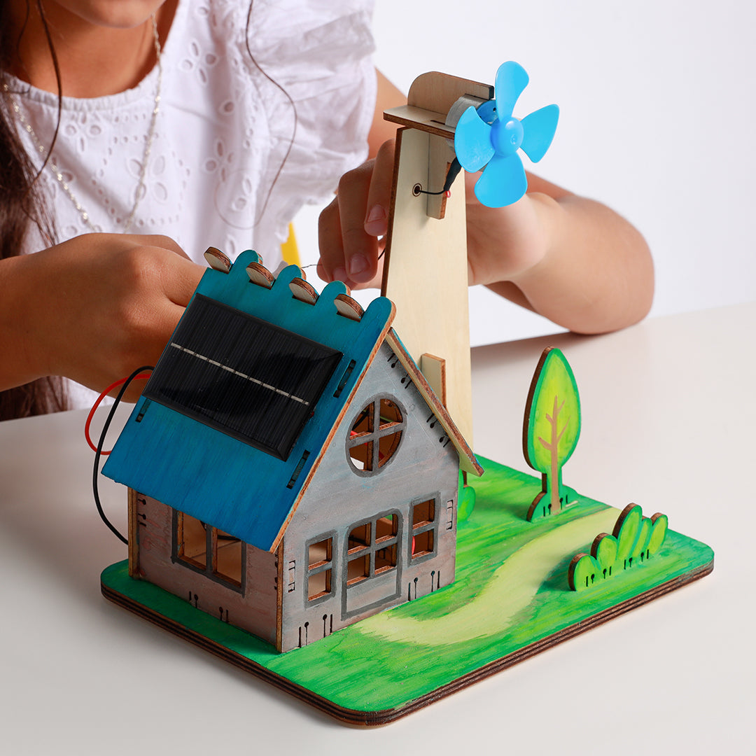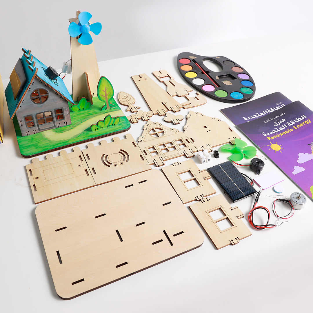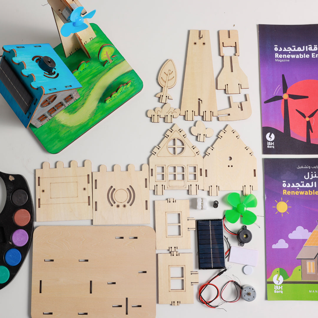 في هذا المشروع ستقوم ببناء منزل صغير يعمل على الطاقة المتجددة (الطاقة الشمسيّة وطاقة الرياح). من خلال مجلة الصندوق ستتعرف على الطاقة ومصادرها المختلفة (من الوقود الأحفوري والتحديات البيئية التي تواجهنا عند استخدامه إلى الطاقة المتجددة وأسباب إتجاه العالم نحوها). ستستكشف كذلك بعض عجائب الطاقة المتجددة، كما ستتمكن من عمل تجربة دولاب الماء لمساعدتك على فهم الطاقة المائية.