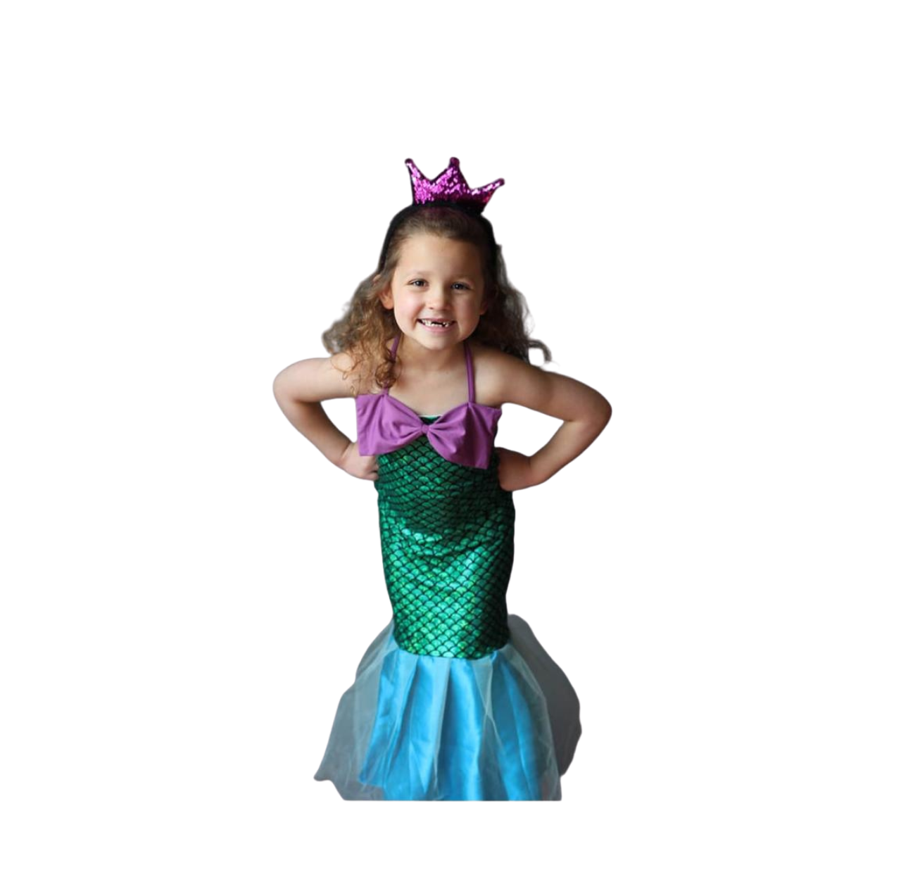 This stunning costume features a shimmering tight dress and a beautiful crown-shaped hairpiece that adds a royal touch. Perfect for parties, cosplay, or any special occasion—shine like the queen of the sea and make every moment unforgettable!