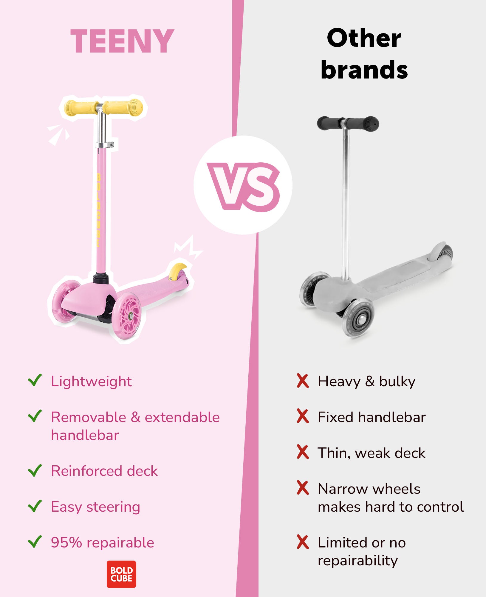 Bold Cube - Three Wheel Scooter Teeny - Pink - Age 3-6 | بولدكيوب - سكوتر صغير - ثلاث عجلات - وردي - العمر 3-6