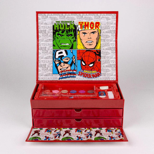This set includes a variety of coloring tools, such as crayons, markers, and colored pencils, all neatly organized in a compact briefcase. The durable design makes it easy to carry and store, while the Marvel graphics add excitement to your creative projects. Ideal for school, home, or travel, this set combines practicality with the beloved Marvel universe.