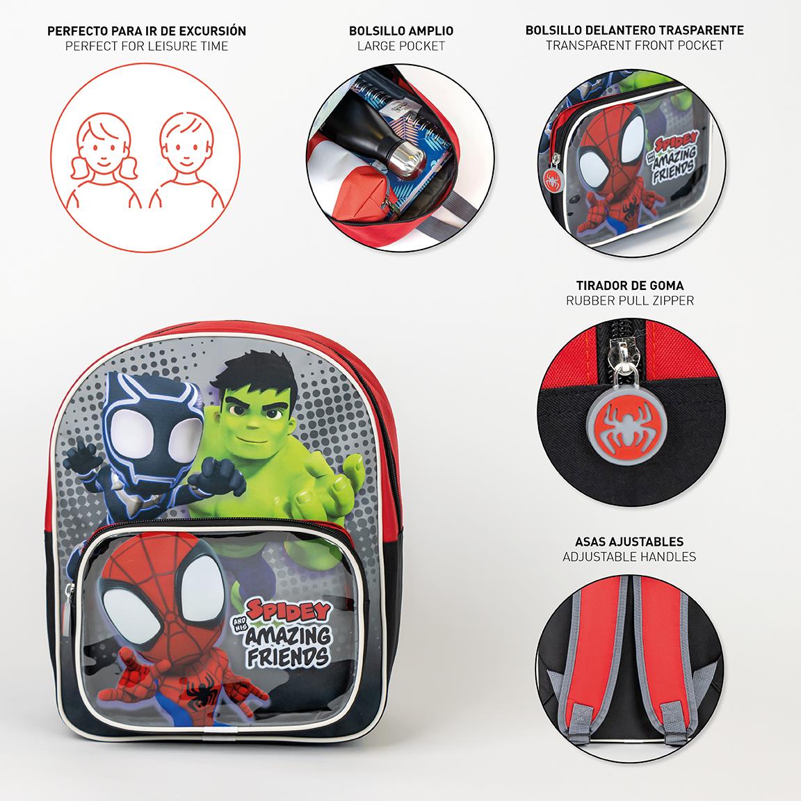 The Cerda Kids Backpack with Spidey design is a fun and stylish choice for kids who love the famous Spiderman character. Featuring a vibrant Spidey design, this backpack is sure to be a favorite among kids. It has a spacious main compartment for storing personal items, and adjustable straps for a comfortable fit. The durable material ensures it withstands everyday use.