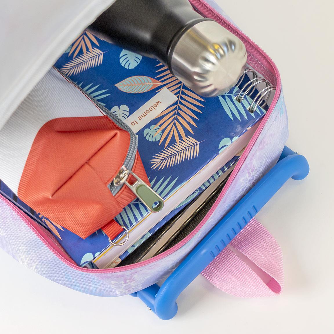 The Cerda Kids Backpack Trolley with 3D Frozen design features fun 3D character applications and wheels for easy carrying. It includes a spacious main compartment and adjustable straps for comfort. Made from durable materials, perfect for everyday use.