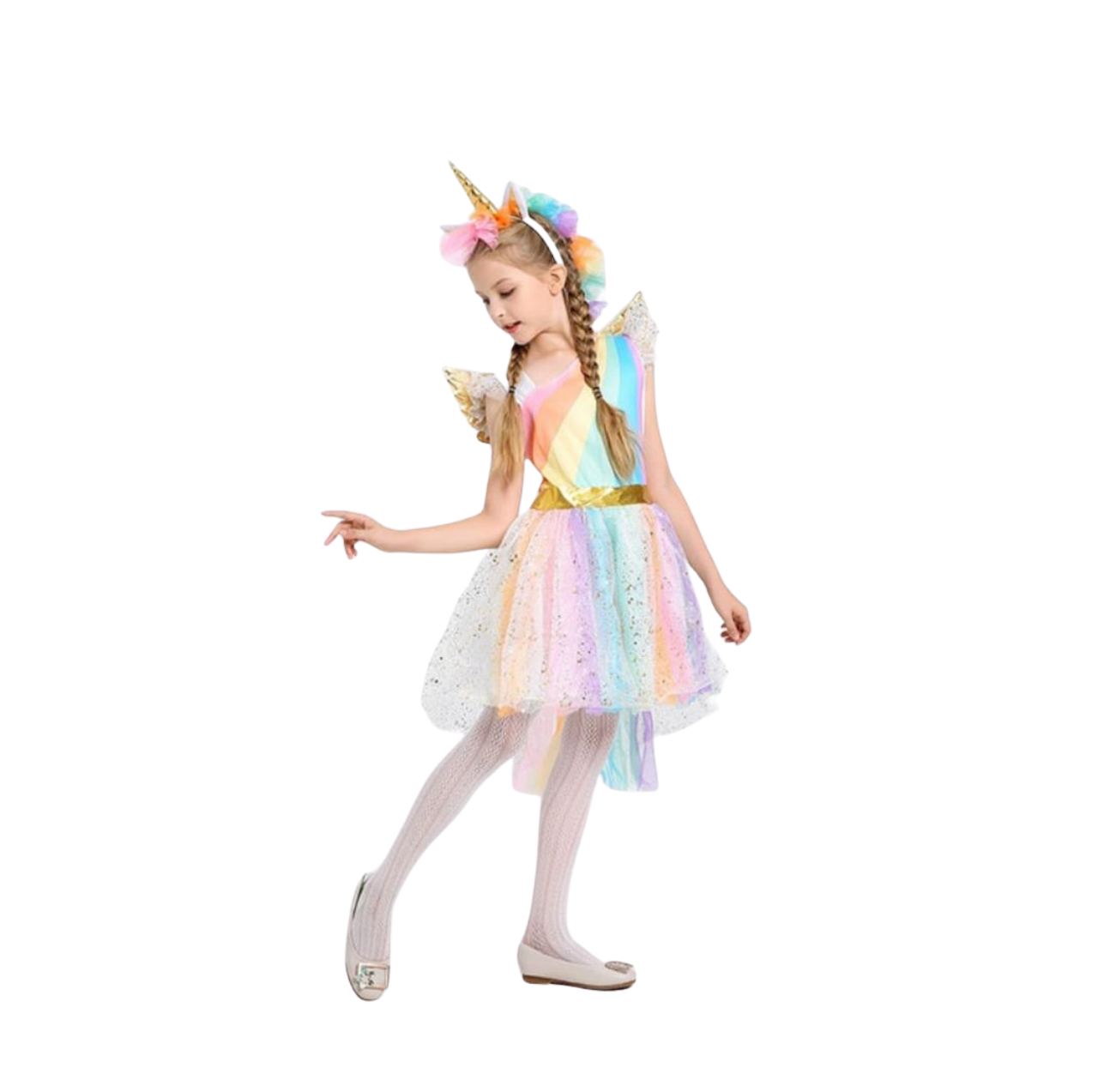 This enchanting costume includes a beautiful dress and a whimsical headpiece—perfect for little dreamers who love magic, color, and fantasy. Ideal for parties, dress-up, or fairy-tale adventures—get ready to dazzle and delight!