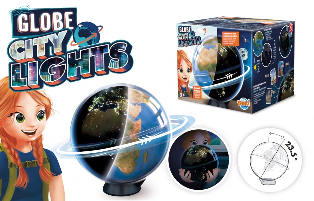 Educational Toy, Buki France, 2 in 1 Light Up Rotating Globe, 20 cm
