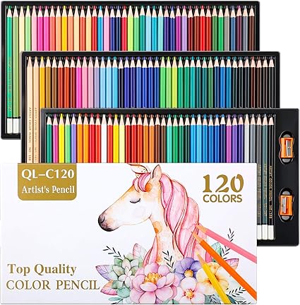 120 Art Coloured Pencils with 2 Pcs Pencil Sharpeners, Dwing Colour Pencils for Adult Colouring Books, SketchBook, Schoraol Supplies Crafting Shading