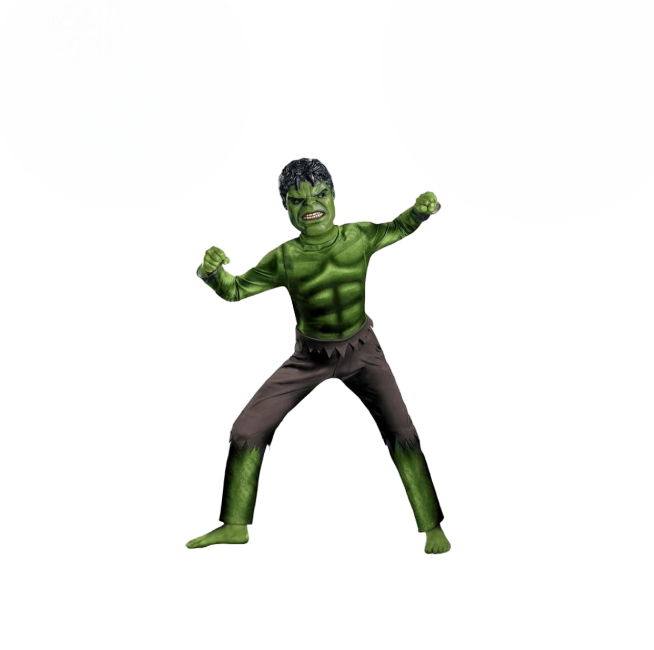 Unleash the power of the strongest Avenger with this epic Hulk costume set! Featuring a muscle-padded outfit and matching Hulk mask, your little hero is ready to smash, stomp, and save the day. Perfect for Halloween, superhero parties, or everyday play—this costume delivers big fun and even bigger muscles!
