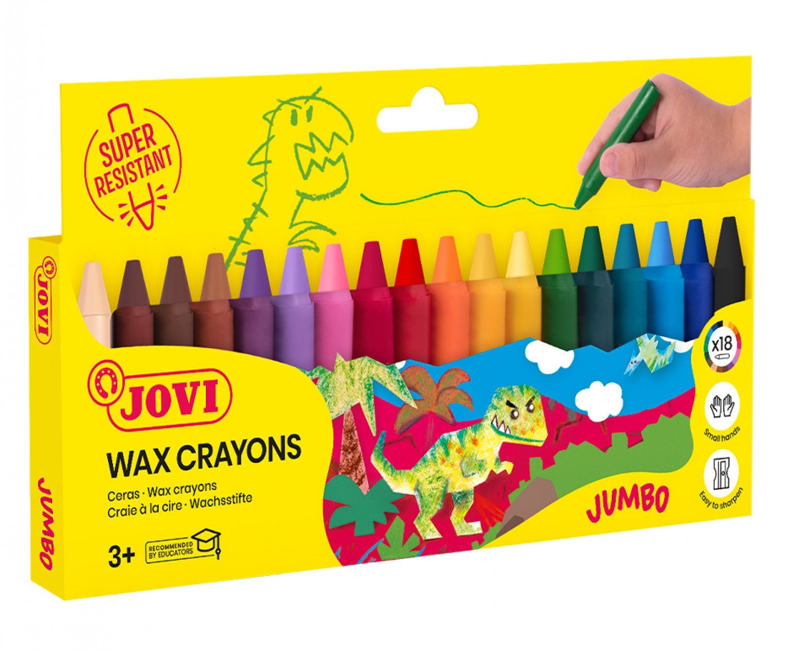 Jovi Jovicolor Wax Crayons - Unscented - Shatterproof - Easy to Wash Out - All Ages - Box of 18 Colours