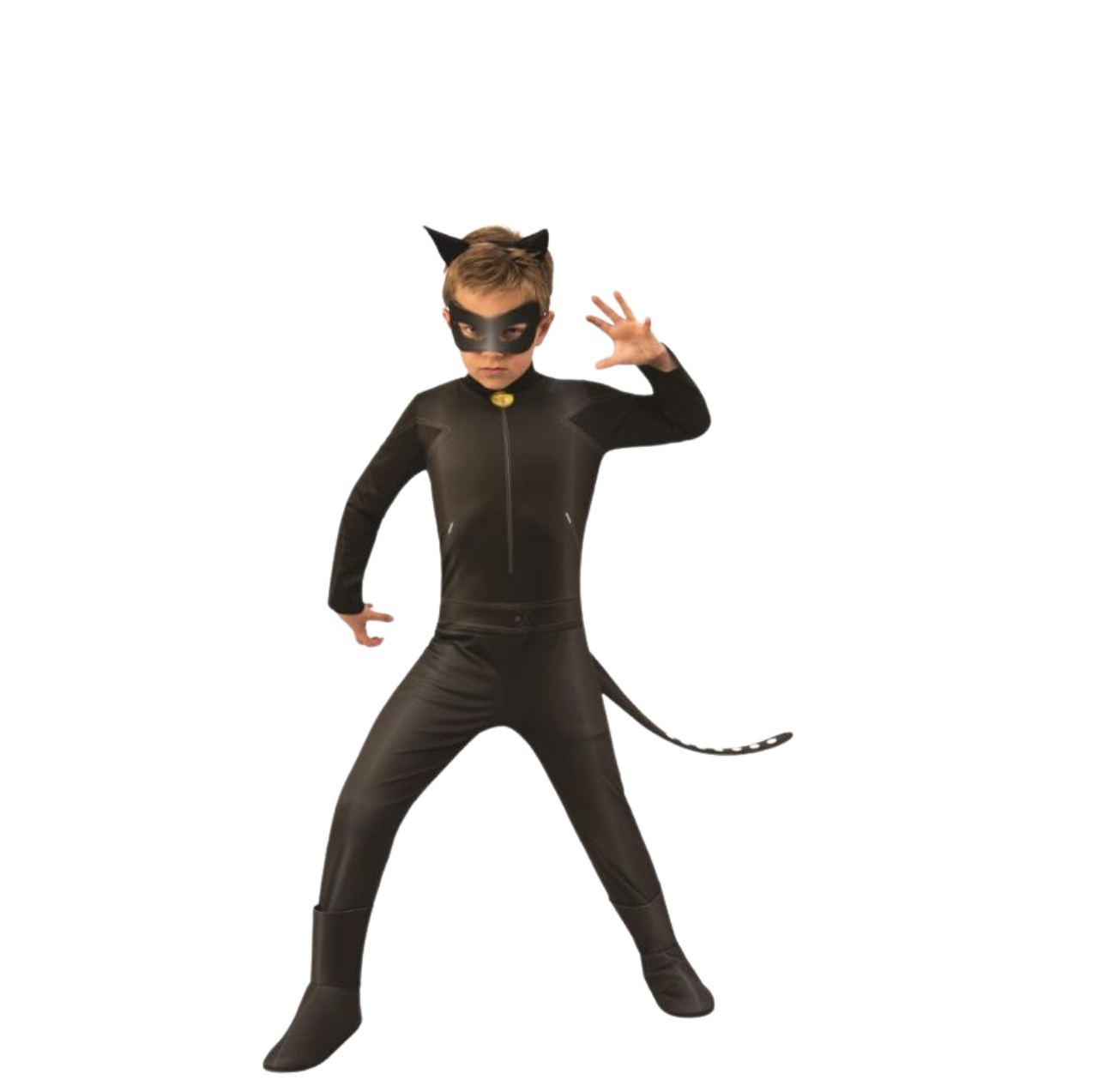 Featuring a sleek black suit, eye mask, and cat-ear hairpiece, it’s perfect for little heroes who love mystery, style, and saving the day. Great for parties, dress-up, or heroic adventures—this look is purr-fectly powerful!