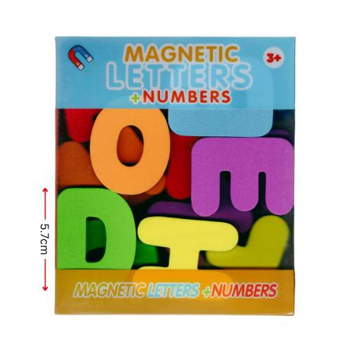 The packaging clearly labels the product as "MAGNETIC LETTERS +NUMBERS" both at the top and bottom.