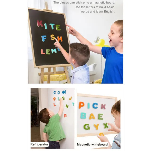 The Mideer Alphabet Board includes 26 colorful magnetic wooden blocks to help children learn their ABCs in a fun and interactive way. The blocks are perfectly sized for small hands, making it easy for little ones to sort shapes and learn the alphabet. Children will enjoy the playful process of discovering letters while developing motor skills.