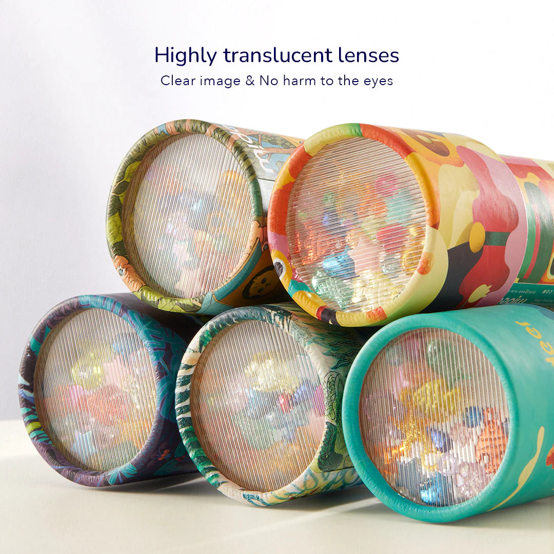 A classic toy for exploring light. This kaleidoscope features a space theme with highly transparent lenses for clear images and eye protection. Just a gentle turn creates a dazzling light effect. The compact size makes it ideal for small hands. It is also resistant to drops and spills.