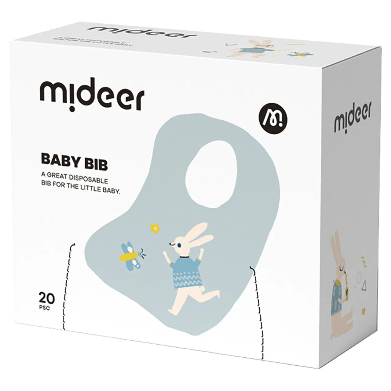 Mideer - Disposable Baby Bib - Blue Bunny 20pcs - 3+ months | ميدير - مريلة أطفال للاستعمال مرة واحدة - الأرنب الأزرق - 20 قطعة - العمر 3 أشهر+