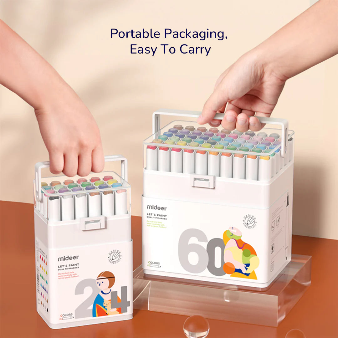 Mideer - Dual Tip Marker - 60 Colors - Age 4+ | ميدير - أقلام ألوان ماركر المزدوجة - 60 لون - العمر 4+