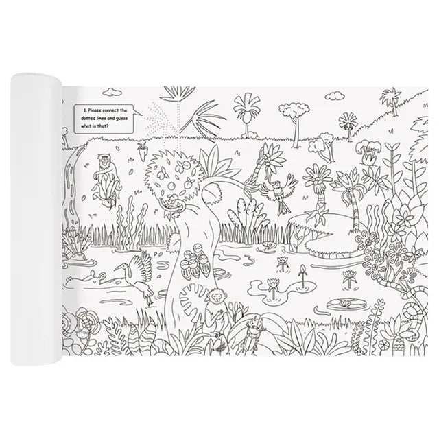 This 10-meter jungle-themed coloring scroll brings rich plot and interesting scenes for children to explore. With patterns in every inch and heavyweight paper, there are no ink bleeding issues. Soybean ink printing is odorless and safe. Over 500 jungle elements reinforce general knowledge. 🌳