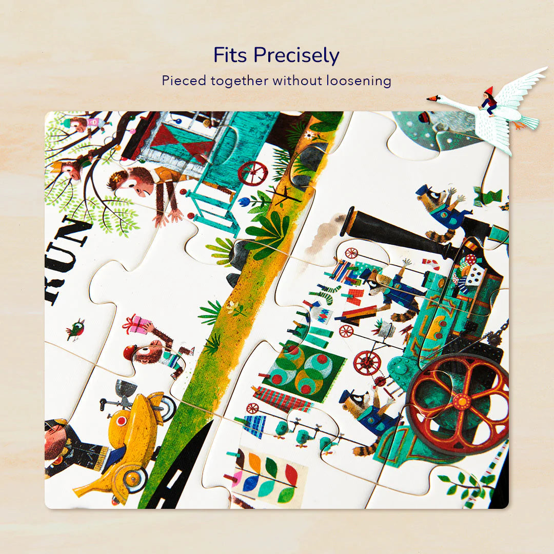 Portable Puzzle Box series has a handbag design, easy to carry and store. 6 themes to meet different children's interests, making it a great gift choice. This puzzle features the night of the dinosaur age with huge dinosaurs active in the mountains and lakes