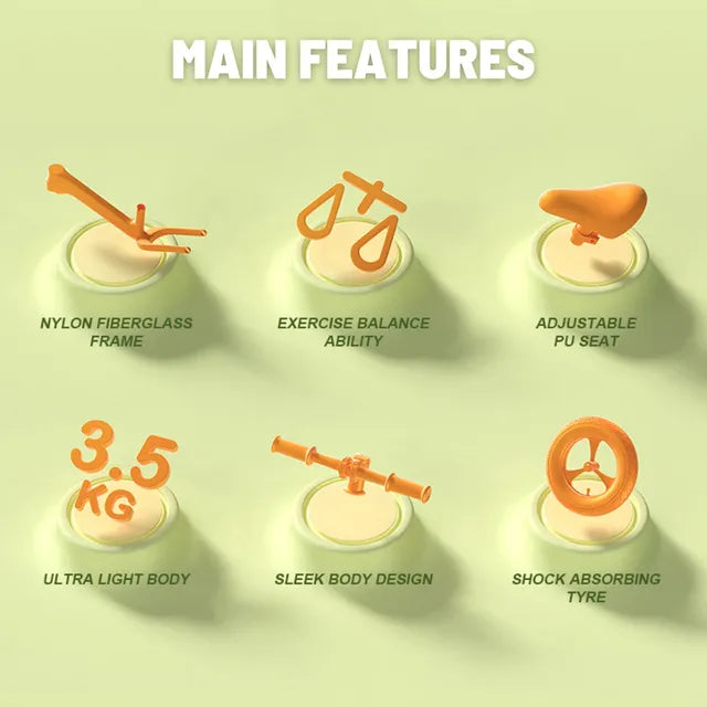 The Mideer Balance Bike is perfect for active kids who love to stay energetic. It helps children improve their balance and develop gross motor skills. With a lightweight design and an adjustable seat, it's suitable for kids from 2 to 6 years old. The fiberglass body provides great strength and impact resistance, while precision bearings offer a smooth ride. Features like a low center of gravity, textured grips, padded seat, and shock-absorbing tires make this bike unique.