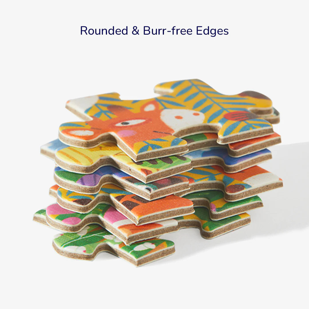 Shaped Puzzle series breaks the shape limit. It brings another kind of fun while slightly increasing difficulty. This rhino-shaped puzzle features the day scene of the rainforest where it lives. It contains 23+ plants, 30+ animals, and other rich rainforest elements.