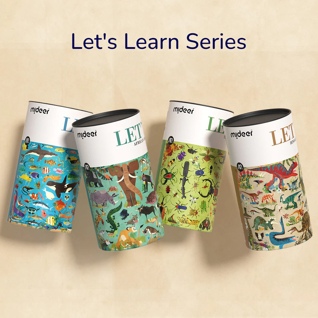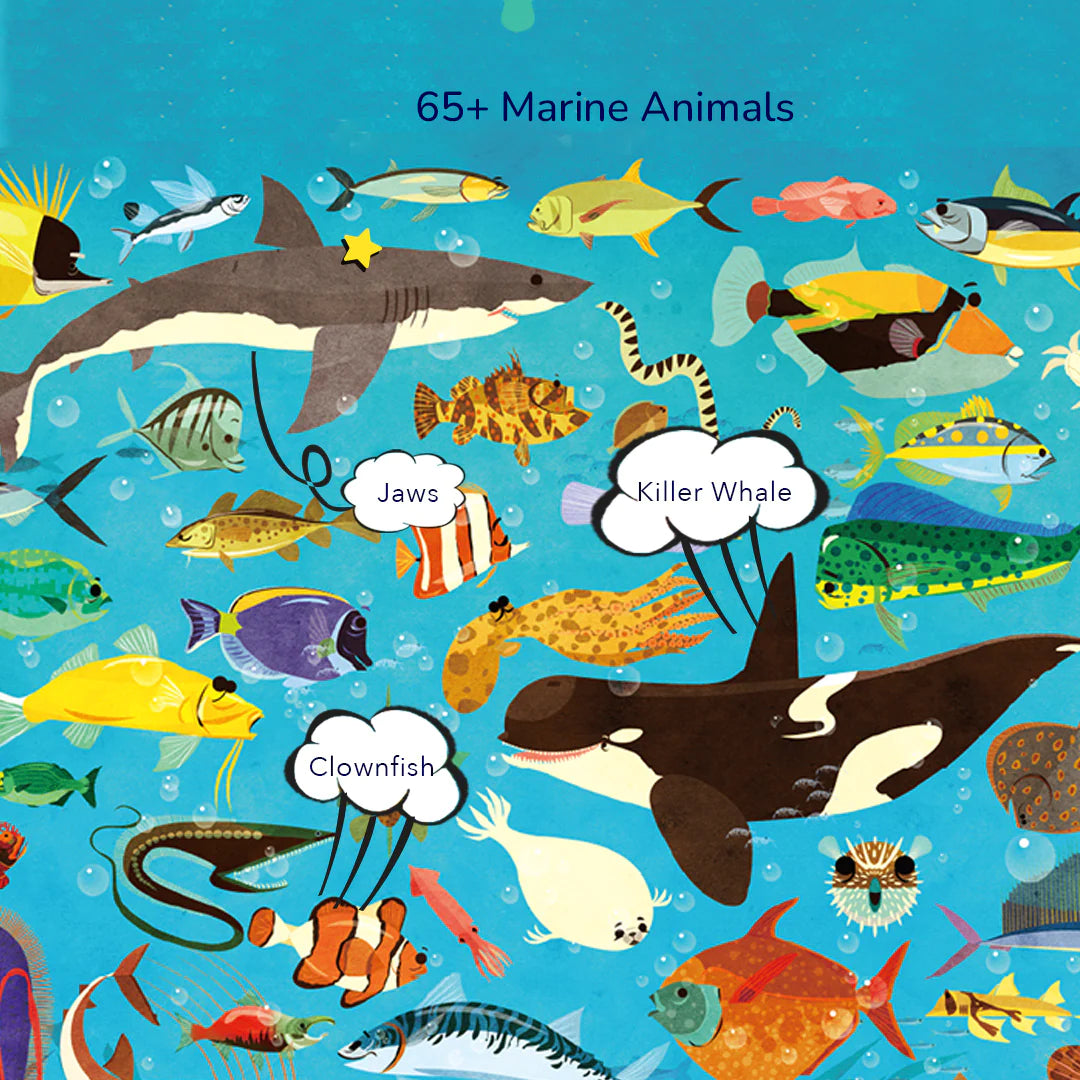 Let’s Learn! puzzle series leads children to learn hundreds of species during playing. Barrel packaging design that is free of mess and easy to store. Each puzzle has a double-sided science brochure. Get yourself right into the undersea world. This puzzle features over 65 types of ocean creatures. Dive in now!