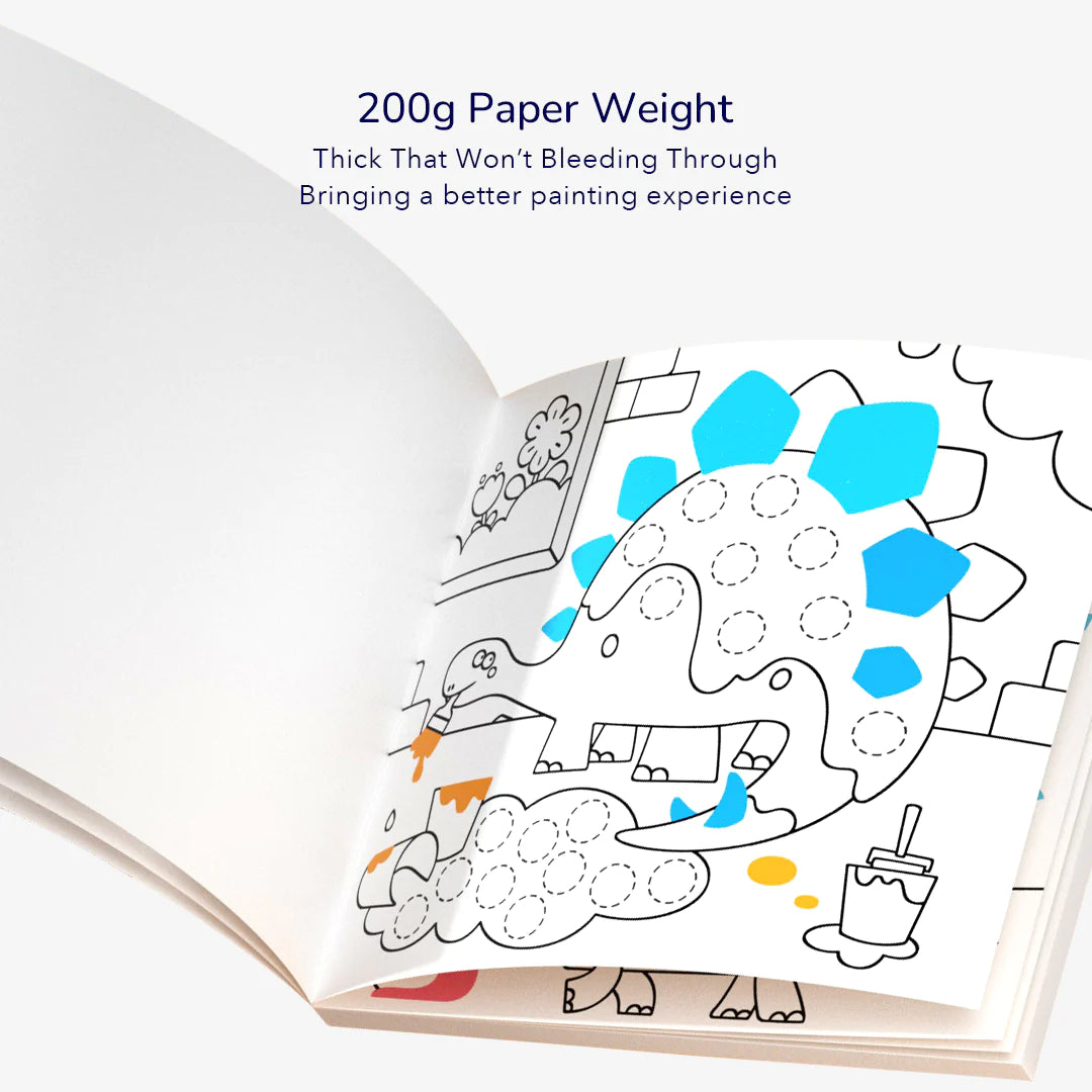Magic Dot Dot coloring books are designed specifically for Magic Dot Marker. 200g double-adhesive paper is thick and impervious to ink, which provides better drawing experience. Larger than A4 paper size, allowing children to scribble freely.