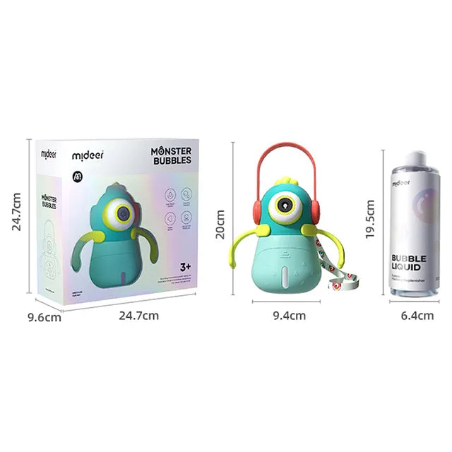 لقد كانت الفقاعات من أكثر الألعاب شهرة بين الأطفال على مر السنين. لماذا لا تحيط نفسك بسحابة من الفقاعات السعيدة؟ مع محرك هادئ ولكن قوي، يصب وحش الفقاعات من ميدير ما يكفي من الفقاعات لملء الغرفة! سيبقي الأطفال مستمتعين لساعات!