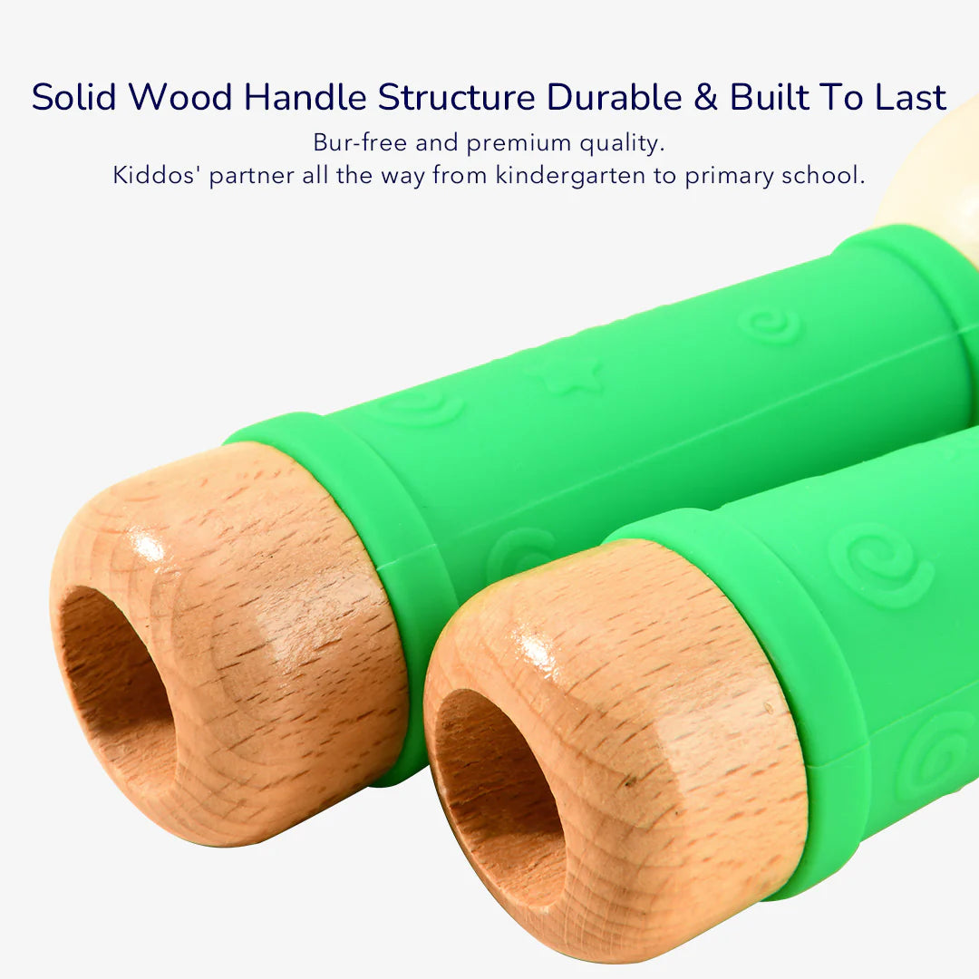 Jump & fall in love with it! Ultra-soft cotton weaving rope, the best choice for beginners. No more ouch! Built-in elastic rope with great elasticity, won’t tangle. 220cm scientific length, parents can help adjust the rope to a suitable length. The handle is designed with anti-skid silicone, offering a soft touch and non-slippery grip. The Tiger Otter handle is made of solid wood, burr-free.