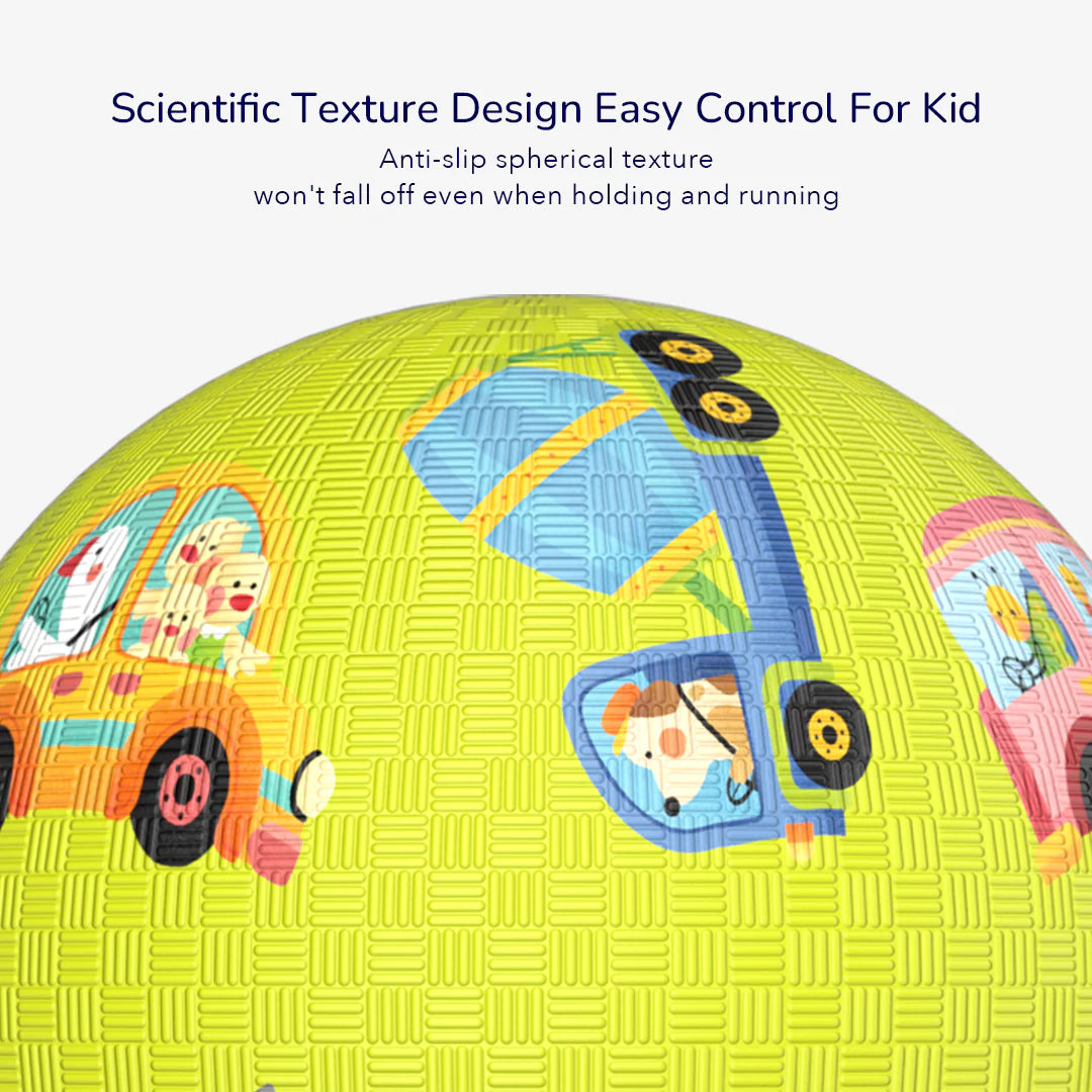 This traffic themed rubber playground ball has vivid illustrations that are anti-fading. Spherical texture design, sweat-resistant, non-slip, wear-resistant, playable both indoor and outdoor. Fully exercise children’s limbs, enhance their physical fitness by a series of actions.