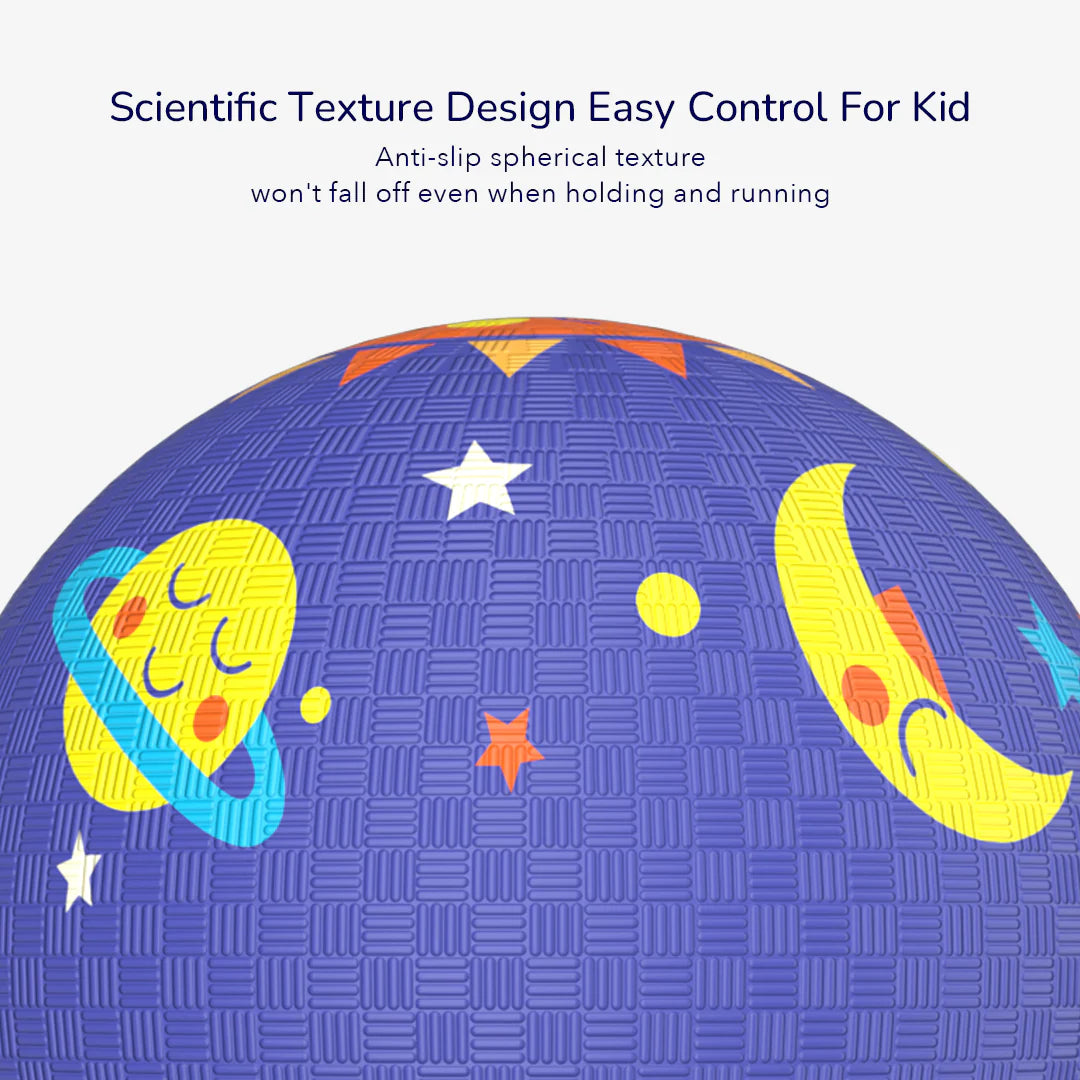 This universe themed rubber playground ball has vivid illustrations that are anti-fading. Spherical texture design, sweat-resistant, non-slip, wear-resistant, playable both indoor and outdoor. Fully exercise children’s limbs, enhance their physical fitness by a series of actions. Size: Big 6.69”, 17 cm.
