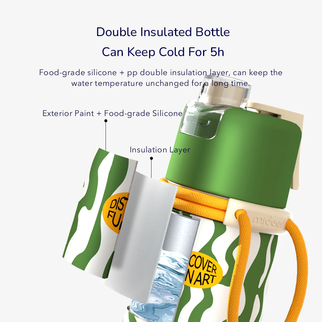 This portable spray bottle is the perfect companion on hot days. Enjoy your drink while using nano-spray technology to keep it cool. The insulated design with a 500ml capacity keeps your drink at the right temperature for a long time. Suitable for any scenario in kids' daily life. Designed with a spill-proof protective cap and silicone soft lips for better durability.