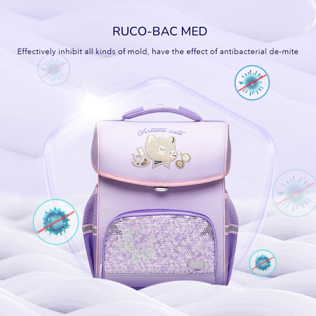 Mideer - Spinecare Kids Backpack - Cat - Purple - Age 6-9 | ميدير - حقيبة ظهر سبينكير للأطفال - القطة - بنفسجي - العمر 6-9