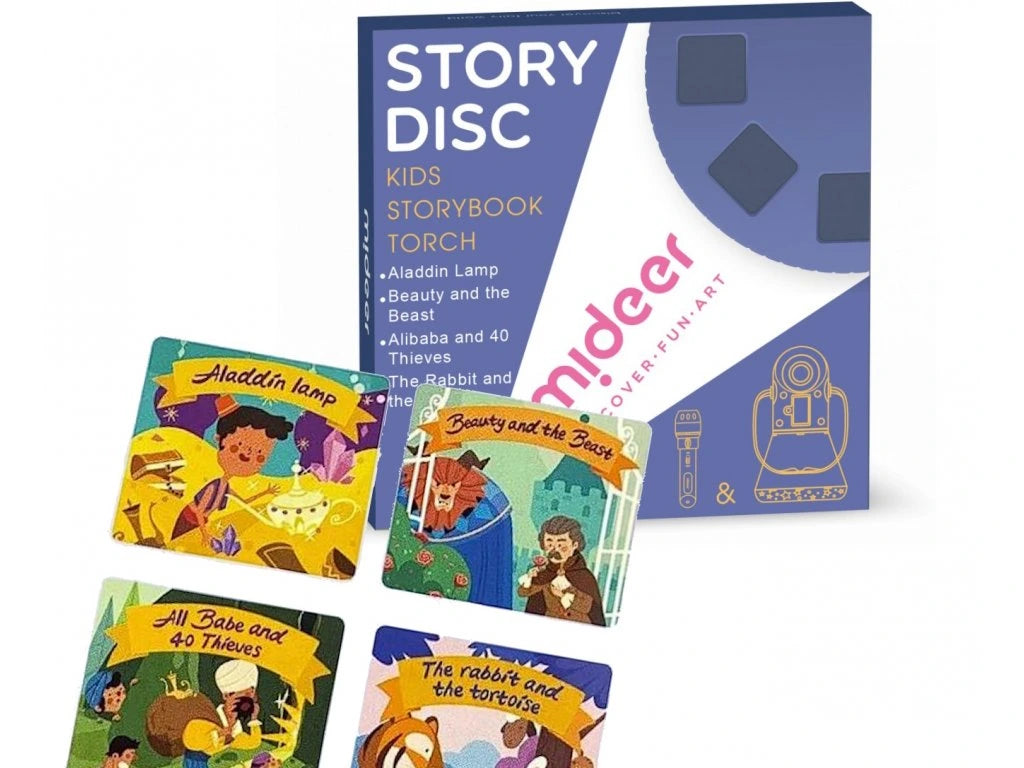 ميدير مشغل الأقراص القصصية السلسة الرابعة - مصباح قصص الأطفال تتضمن: مصباح علاء الدين، جميلة والوحش، علي بابا والأربعين لصًا، الأرنب والسلحفاة.