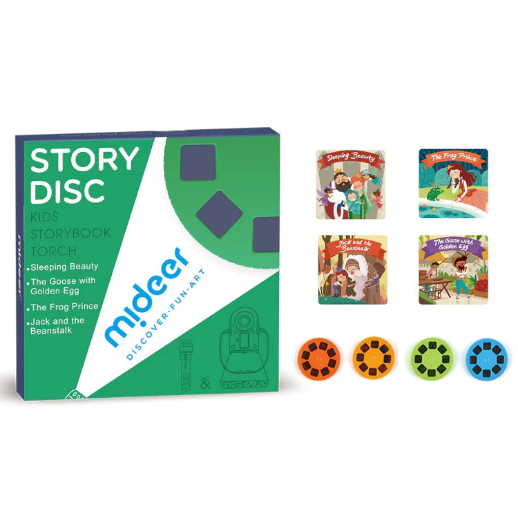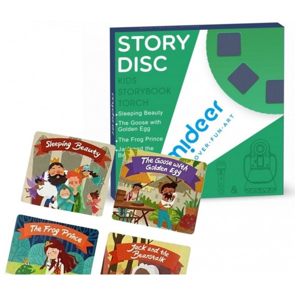 ميدير مشغل الأقراص القصصية السلسة الخامسة لمصباح قصص الأطفال تتضمن: الأميرة النائمة، الإوزة ذات البيضة الذهبية، الأمير الضفدع، جاك والشجرة السحرية.