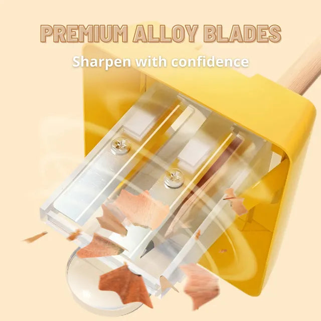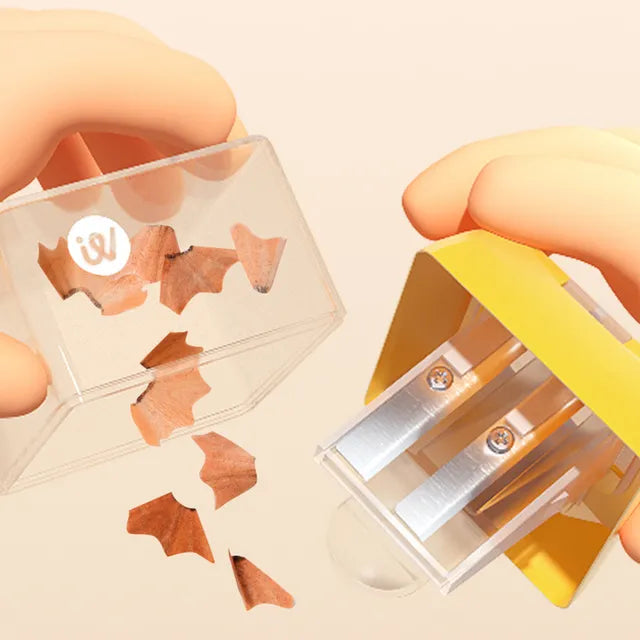 The Mideer pencil sharpener offers a compact design that easily fits into bags, binder pockets, and more. The sharpener features a 3-hole design for differently sized pencils and a premium alloy blade. The easy-to-hold sharpener fits all standard and art pencils. It also has a transparent design so you can see when you need to dispose of the pencil shavings.