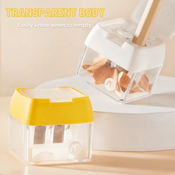 The Mideer pencil sharpener offers a compact design that easily fits into bags, binder pockets, and more. The sharpener features a 3-hole design for differently sized pencils and a premium alloy blade. The easy-to-hold sharpener fits all standard and art pencils. It also has a transparent design so you can see when you need to dispose of the pencil shavings.
