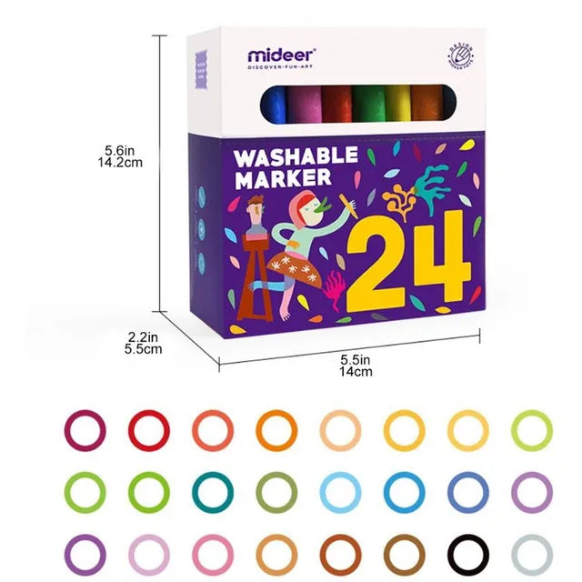 Mideer - Washable Marker - 24 colors - Age 3+ | ميدير - قلم ماركر قابل للغسل - 24 لون - العمر 3+
