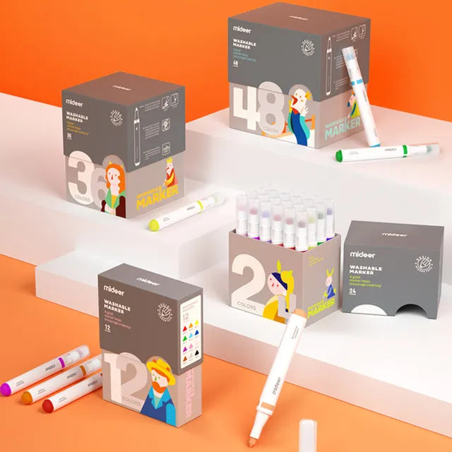 Mideer - Washable Marker Small tip - 36 colors - Age 3+ | ميدير - ألوان قابلة للغسل - 36 لون - العمر 3+