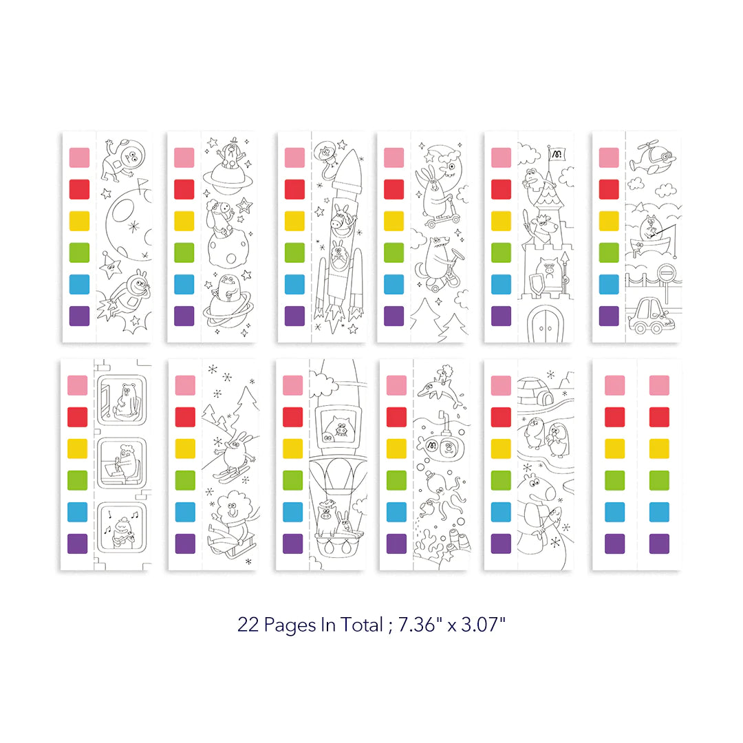 هذه السلسلة تحتوي على أصباغ مدمجة. ما عليك سوى غمس الماء للرسم. أصباغ، صفحات للرسم، وفرشاة في مجموعة واحدة. خيار رائع للأنشطة أثناء التنقل.