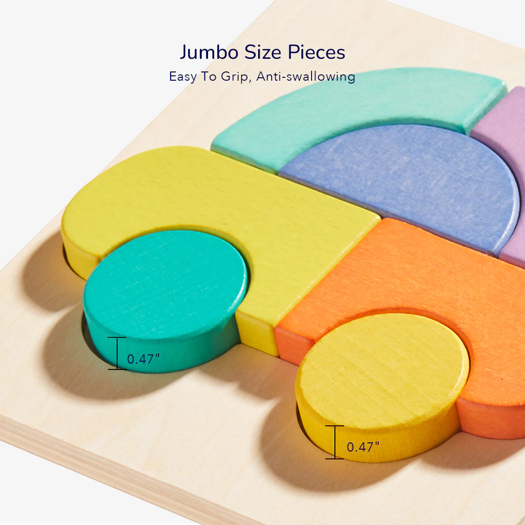 This Mideer wooden block puzzle enhances the development of your child. There are 4 patterns to choose from for kids to practice picking up and developing small muscles. Increase concentration and patience Learn about various shapes and colors. The large wood size blocks are perfect for early education as babies can grip them easily.