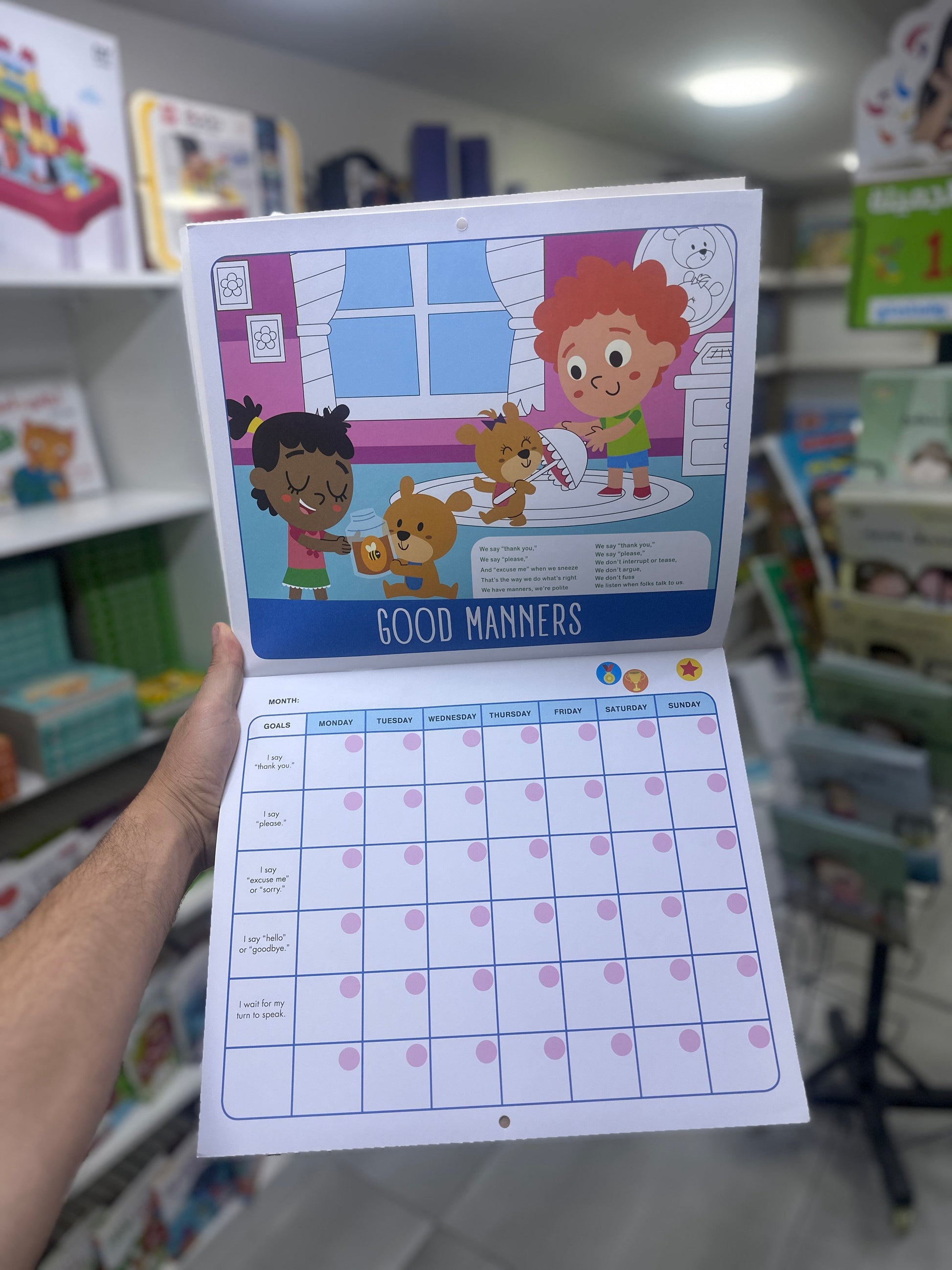 This sticker-filled motivational calendar helps kids develop confidence and learn to be more independent. Each double page addresses a different theme, setting out objectives to attain, accompanied by coloring activities as well as tips and tricks for parents.